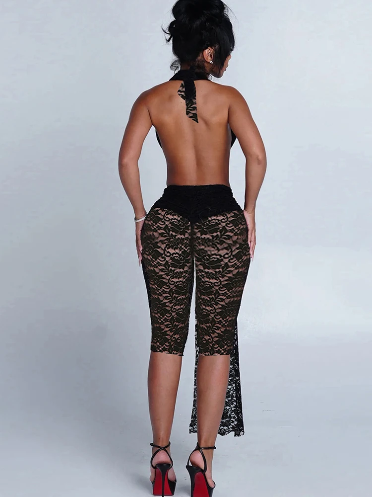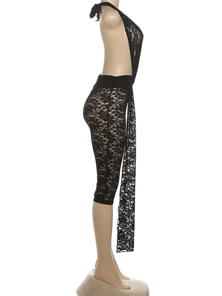 Weird Puss Jacquard Halter Romper Women Sexy Ribbon Patchwork Sleeveless Backless Workout Midnight Activity Clubwear Playsuits
