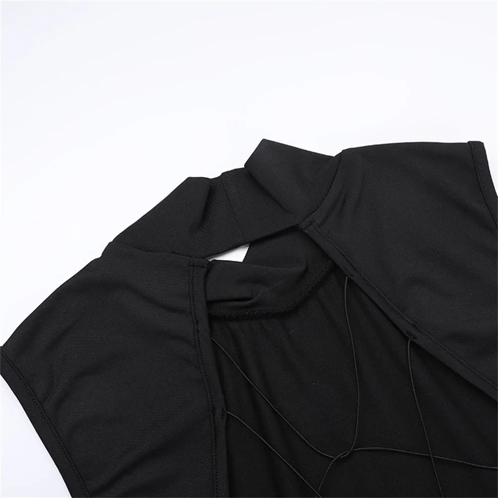 Weird Puss Y2K Butterfly Metal Dress Women Hollow Backless Sleeveless Fitness Cross Bandage Midnight Club Summer Vacation Bodyco