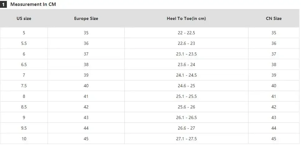 NOTE: foot length is not the insole length!( foot length less than insole length)manual measurement, please allow 0.5cm error.thanks