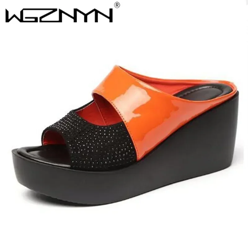 WGZNYN 2024 Summer Women Platform Slippers Wedge Ladies Flip Flops High Heeled Slip on Shoes Casual Solid Sandal Woman Shoes