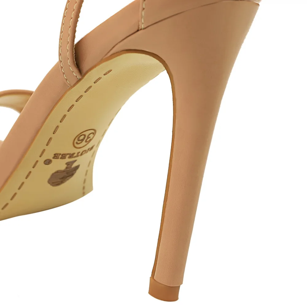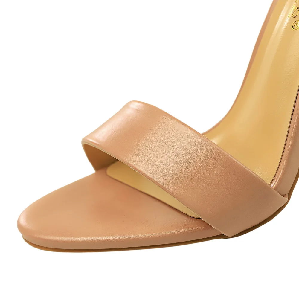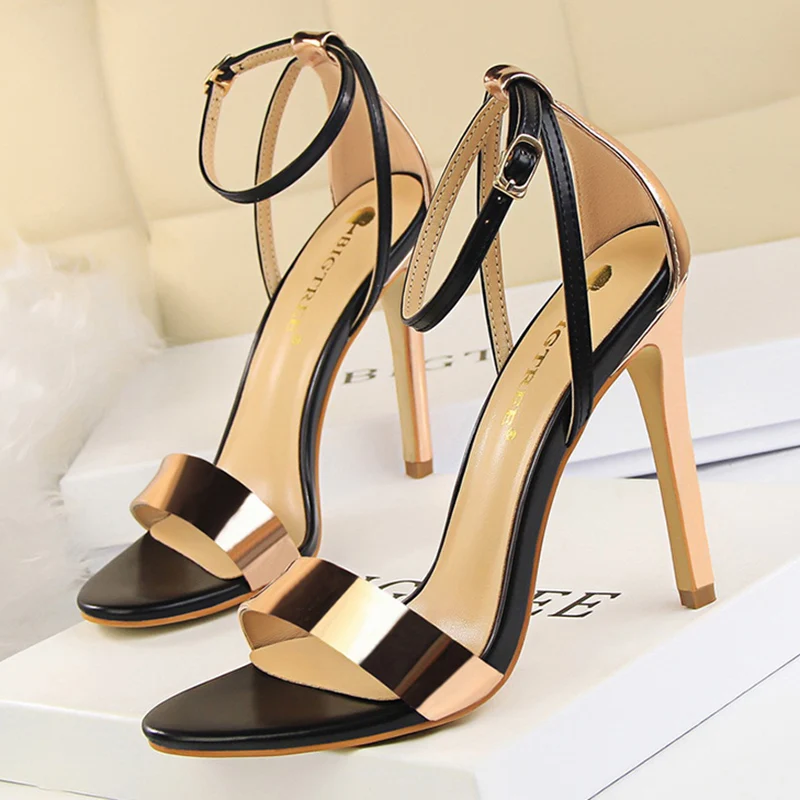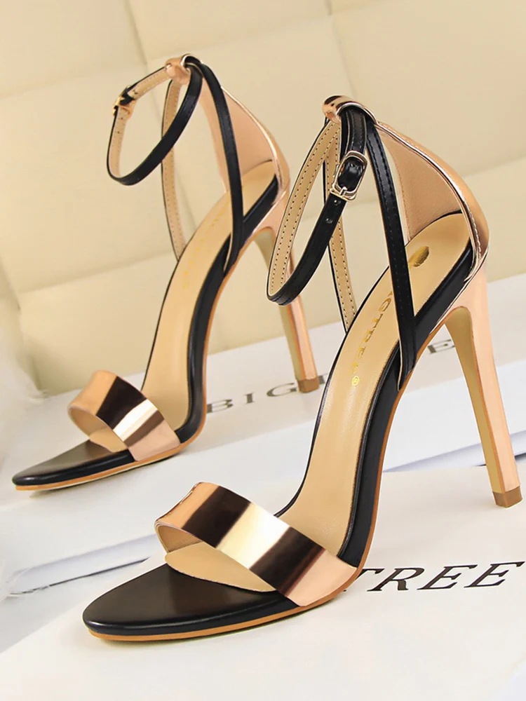 Women Black-White Concise Leather 11cm High Heels Sandals Lady Adjustable Ankle Buckle Shoes Female Fashion Party Dress Shoes