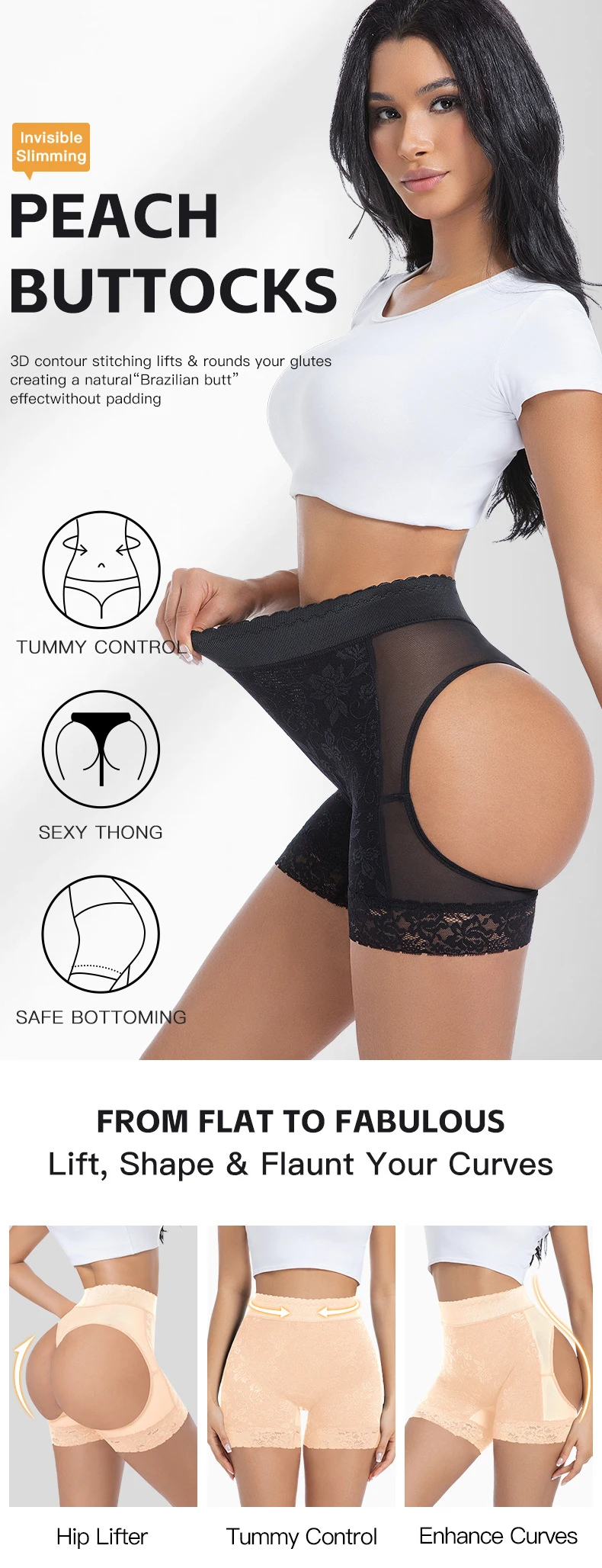 Women Buttock Open Hip Booty Shorts Lace Butt Lifter Shaper Panties Body Shaper Wedding Pant Underwear Female Ass Push Up Panty