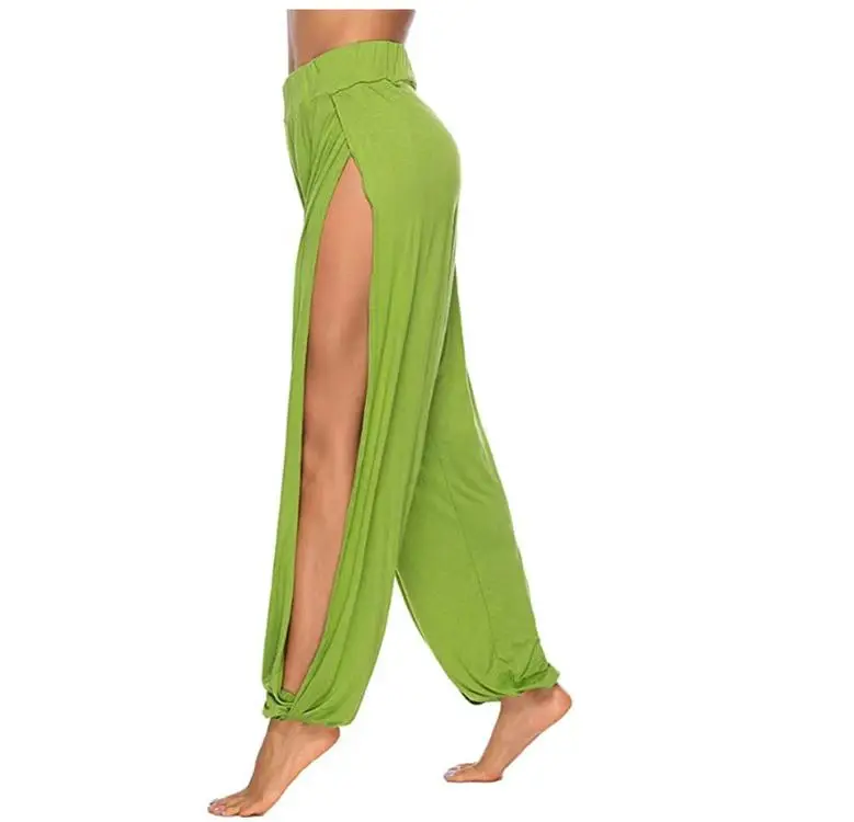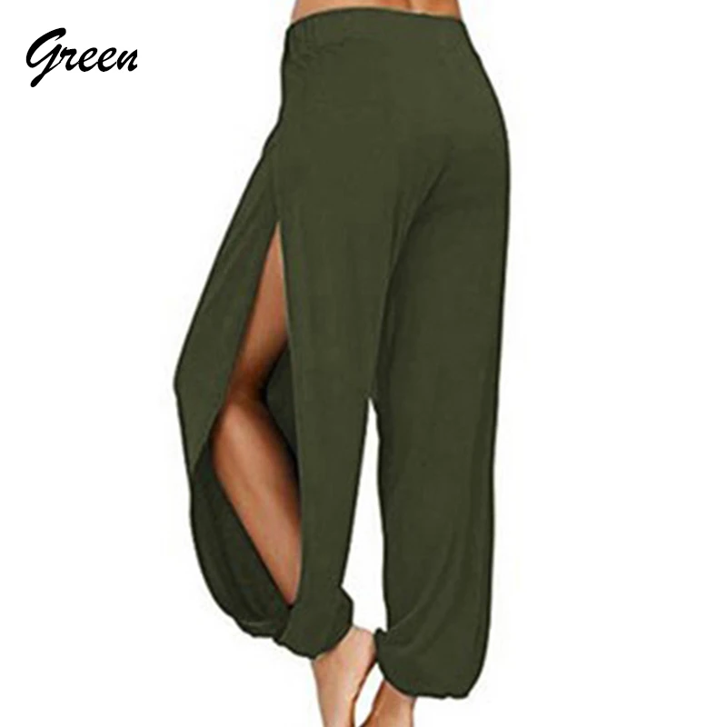 Women Fashion Yoga Pants High Waisted Slit Wide Leg Haren Pants Gym Leggings Casual Solid Hollow Workout Trousers Gym Home Wear