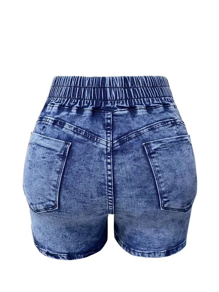 Women Jeans Denim Shorts Mid Waist Sexy Slim Fit Drawstring Pleated Summer 2024 Washing Pockets Slight Strech Solid Regular