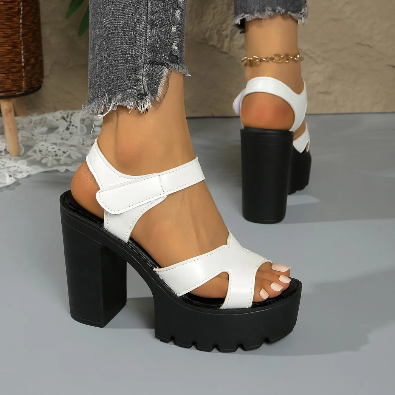 Women Office Mom Women sandals Platform comfortable Sandals Patent Leather Shoes 2025 Summer Elegant Block High Heels Sandals
