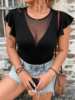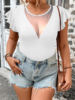 Women Plus Size V-Neck High-Stretch Solid Color Patchwork Ruffle Sleeve T-shirt, Concert Outfit Rave Outfits Festival