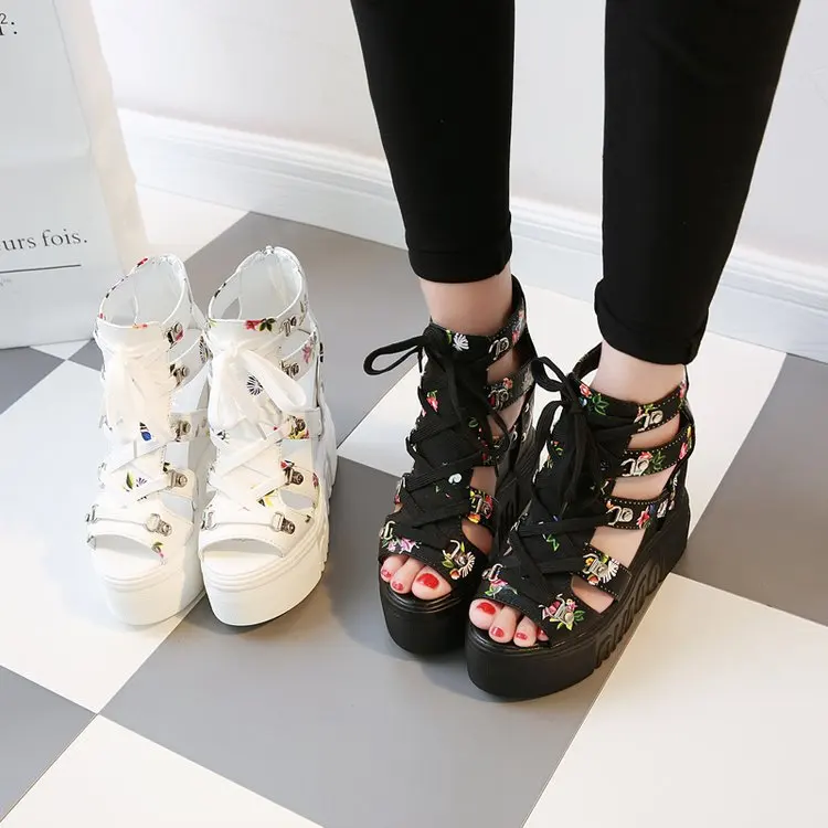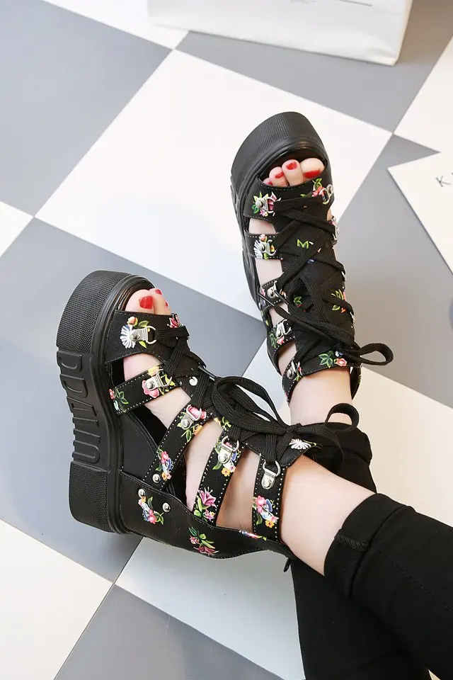Women Shoes 2023 Summer Sandals 12cm Wedge Platform Open Toe Sandals Woman Rome High Heels Casual Shoes Lady Female Sandalias