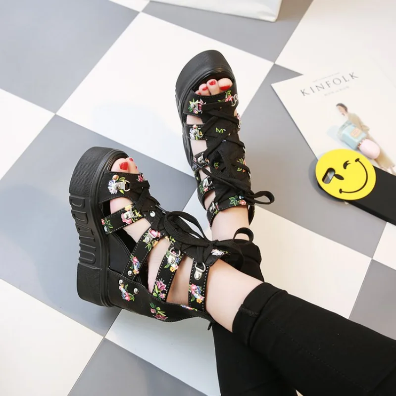 Women Shoes 2023 Summer Sandals 12cm Wedge Platform Open Toe Sandals Woman Rome High Heels Casual Shoes Lady Female Sandalias