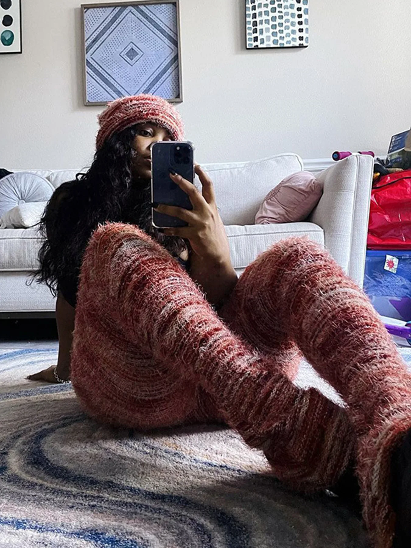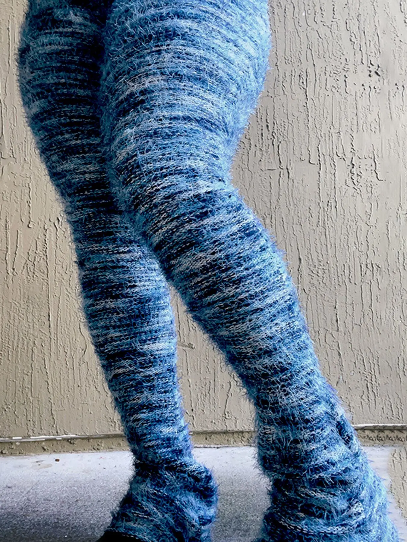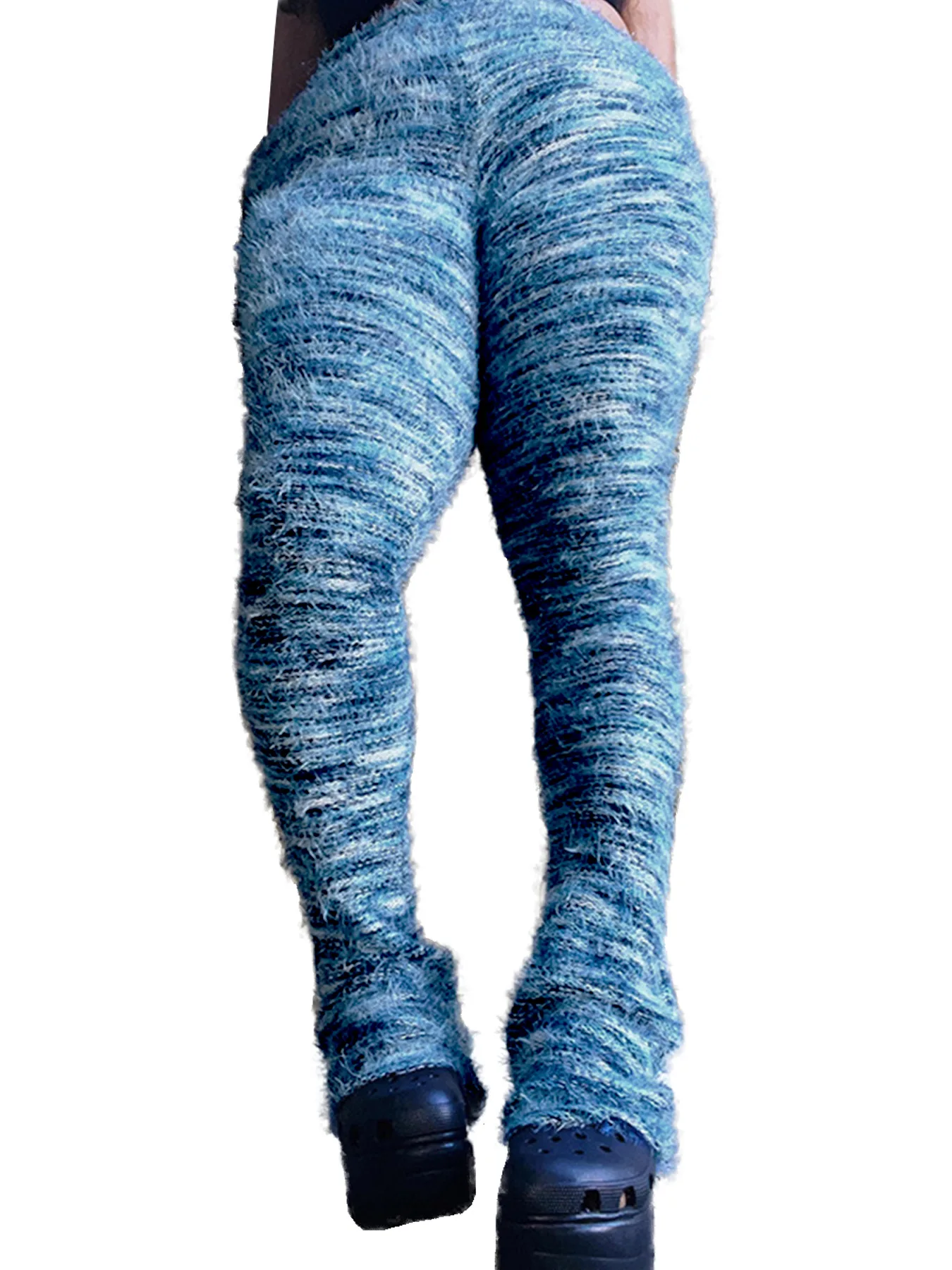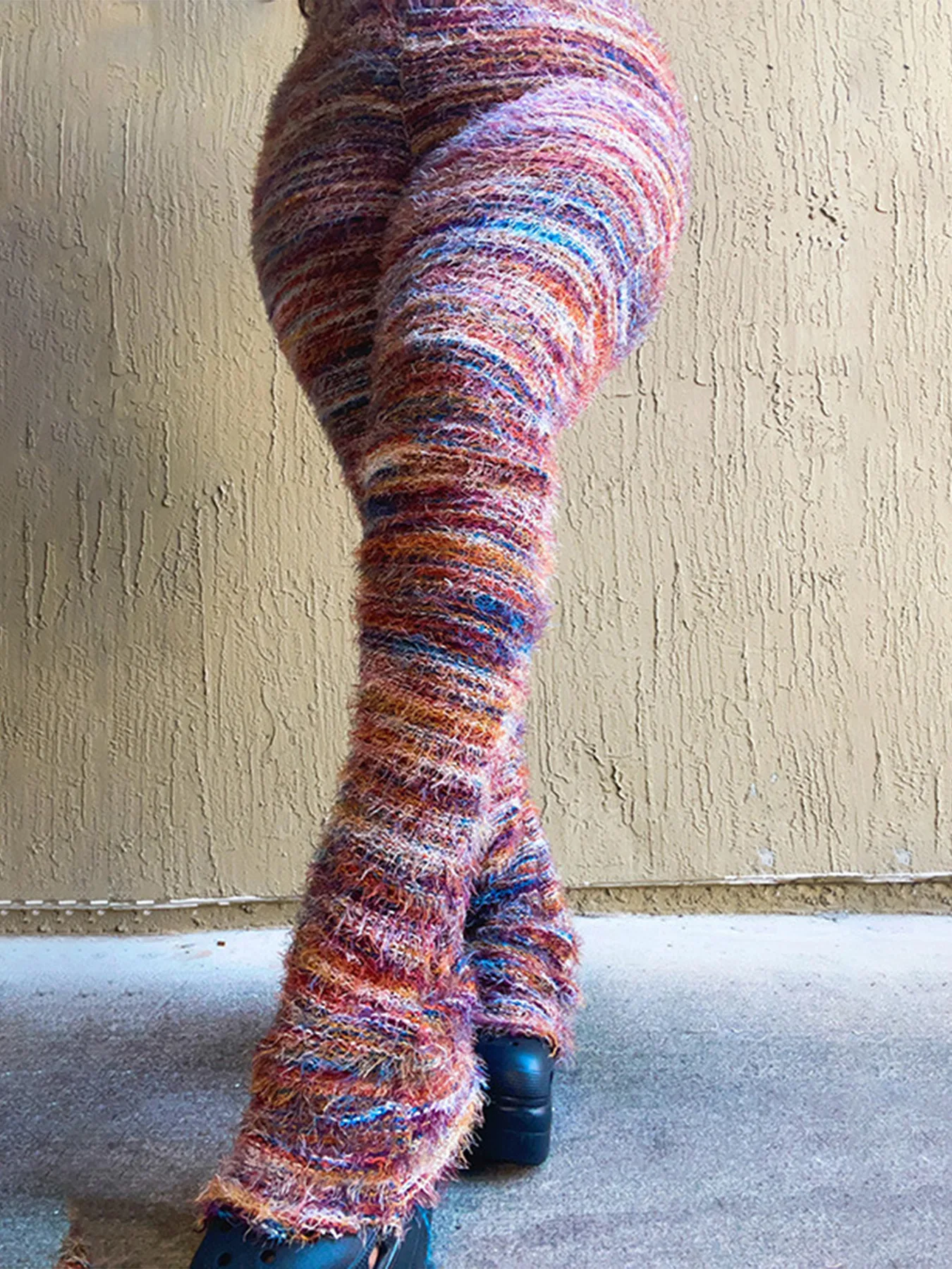 Women Strecth Plush Flare Pants Patchwork Stripe Elastic Waistband 2024 Autumn Winter Warm Trousers Casual Female Sweatpants