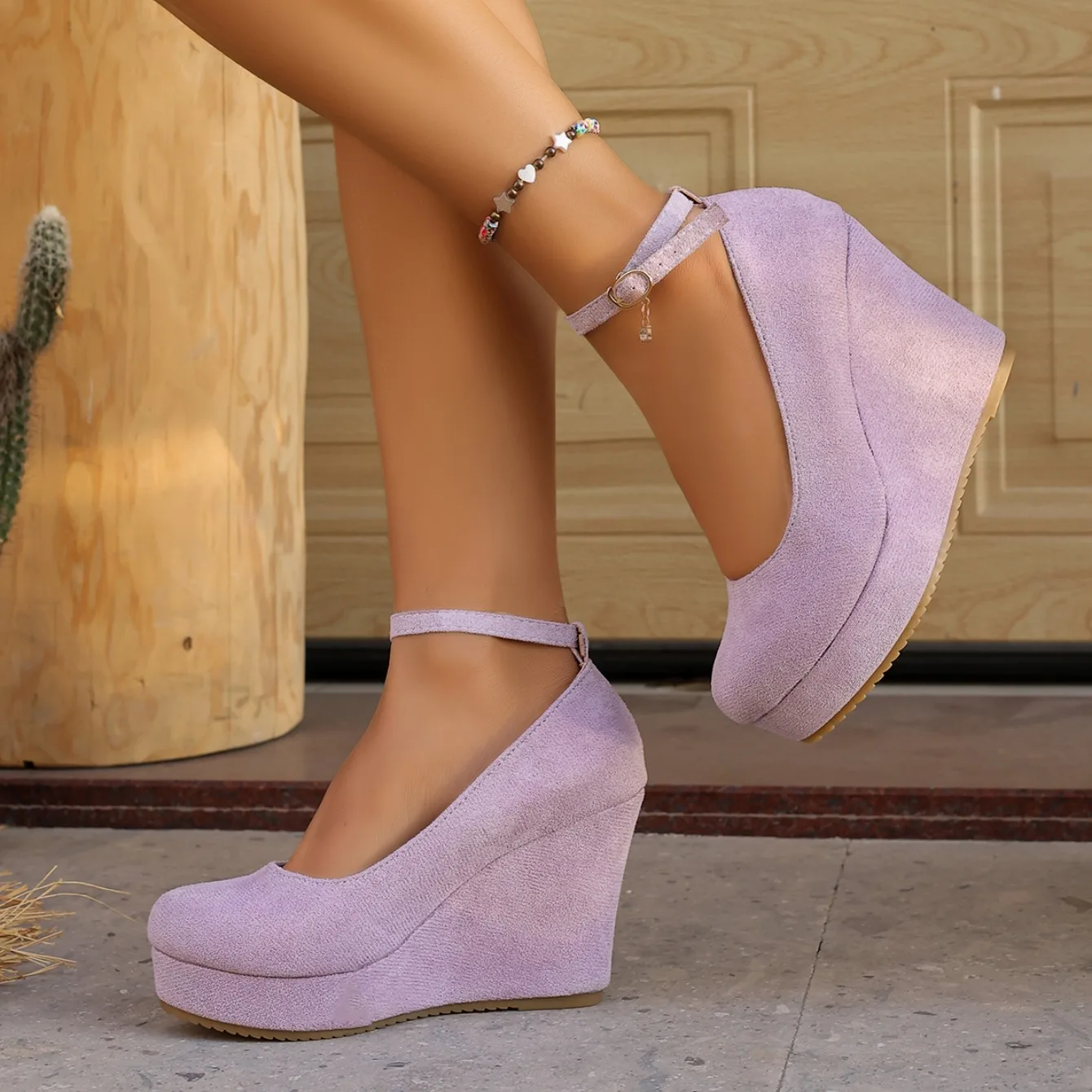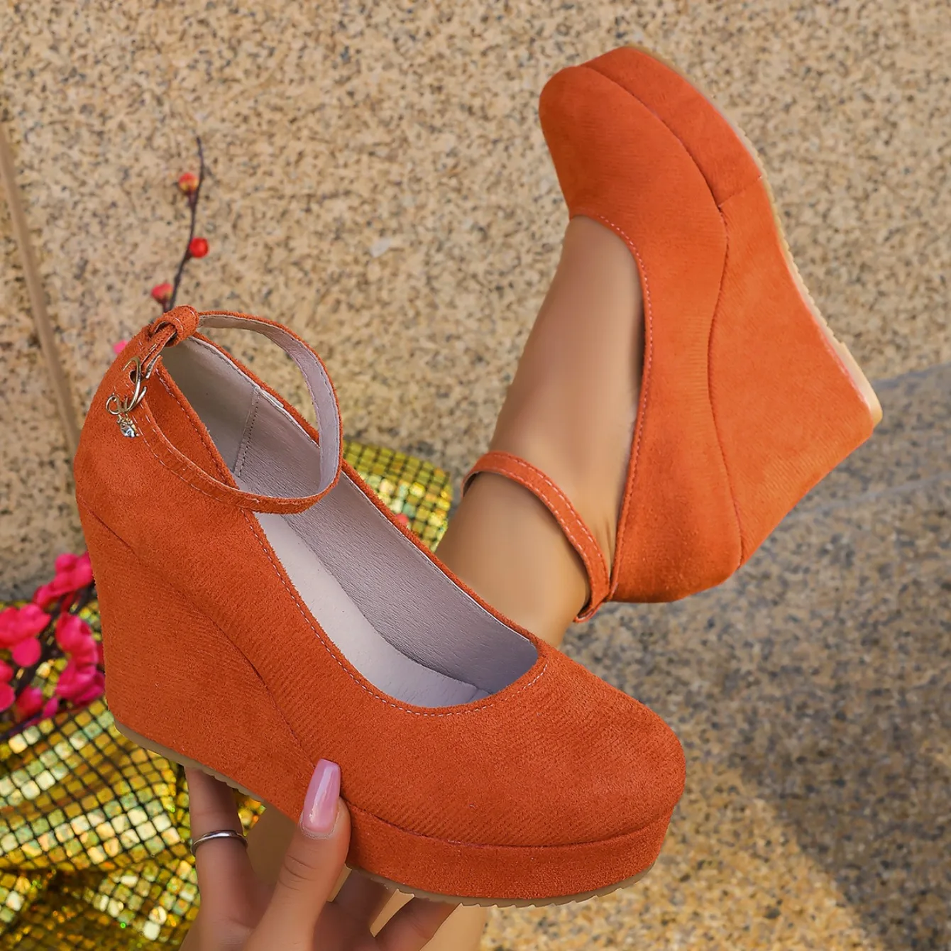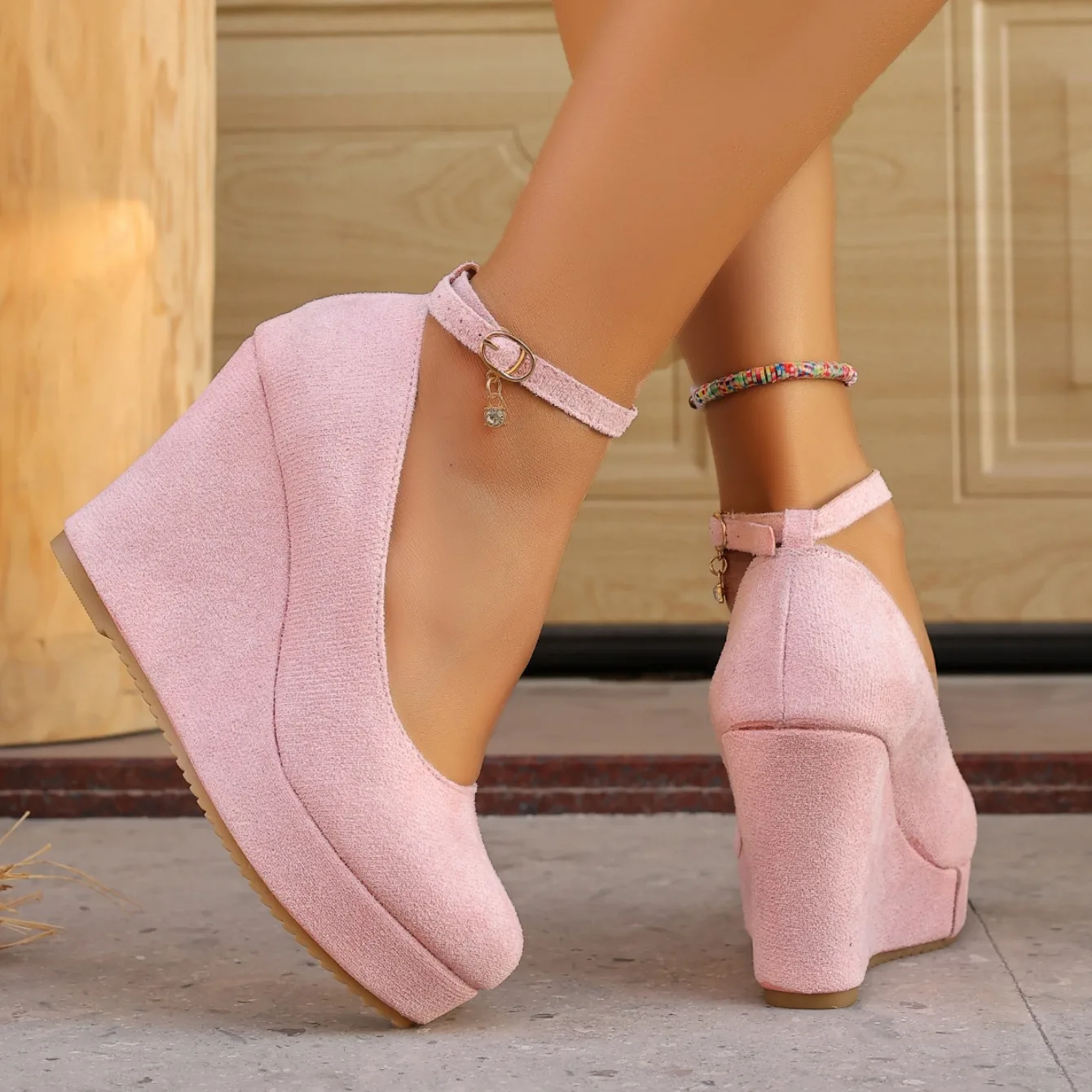Women Wedge Pumps Sexy Buckle Round Toe Ankle Strap High Heels Shoes Platform Party Wedding Shoes Female Zapatos De Mujer