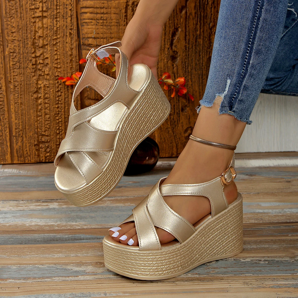 Women Wedge Sandals Summer New Fashion Platform Buckle Shoes for Women Casual Comfortable Walking Sandals Sandalias De Mujer