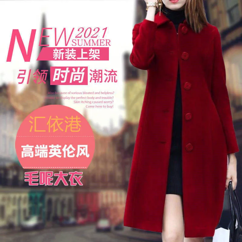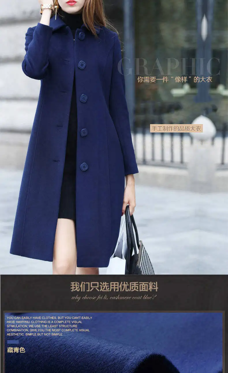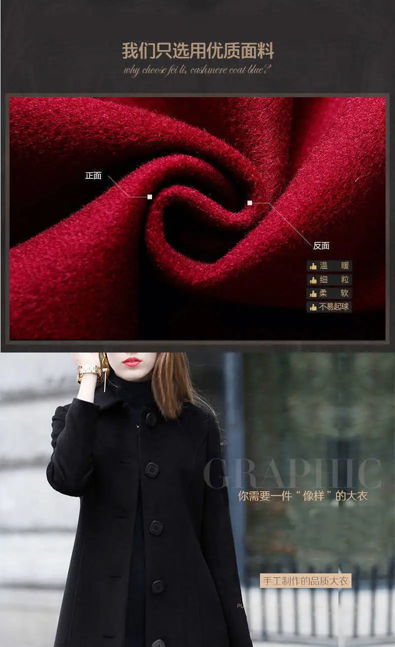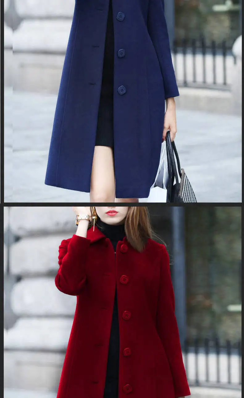 Women Woolen Blend Trench Coats Cold Winter Thicken Turn Down Collar Long Sleeve Overcoats Outwear SMSM-LLG5641