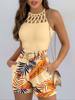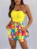 Women’s 2-piece Summer Sexy Tank Tops Fashion Beach Suit Slim Short Top Shorts Print Casual Hollow Sleeveless Vest 2 Piece Suit