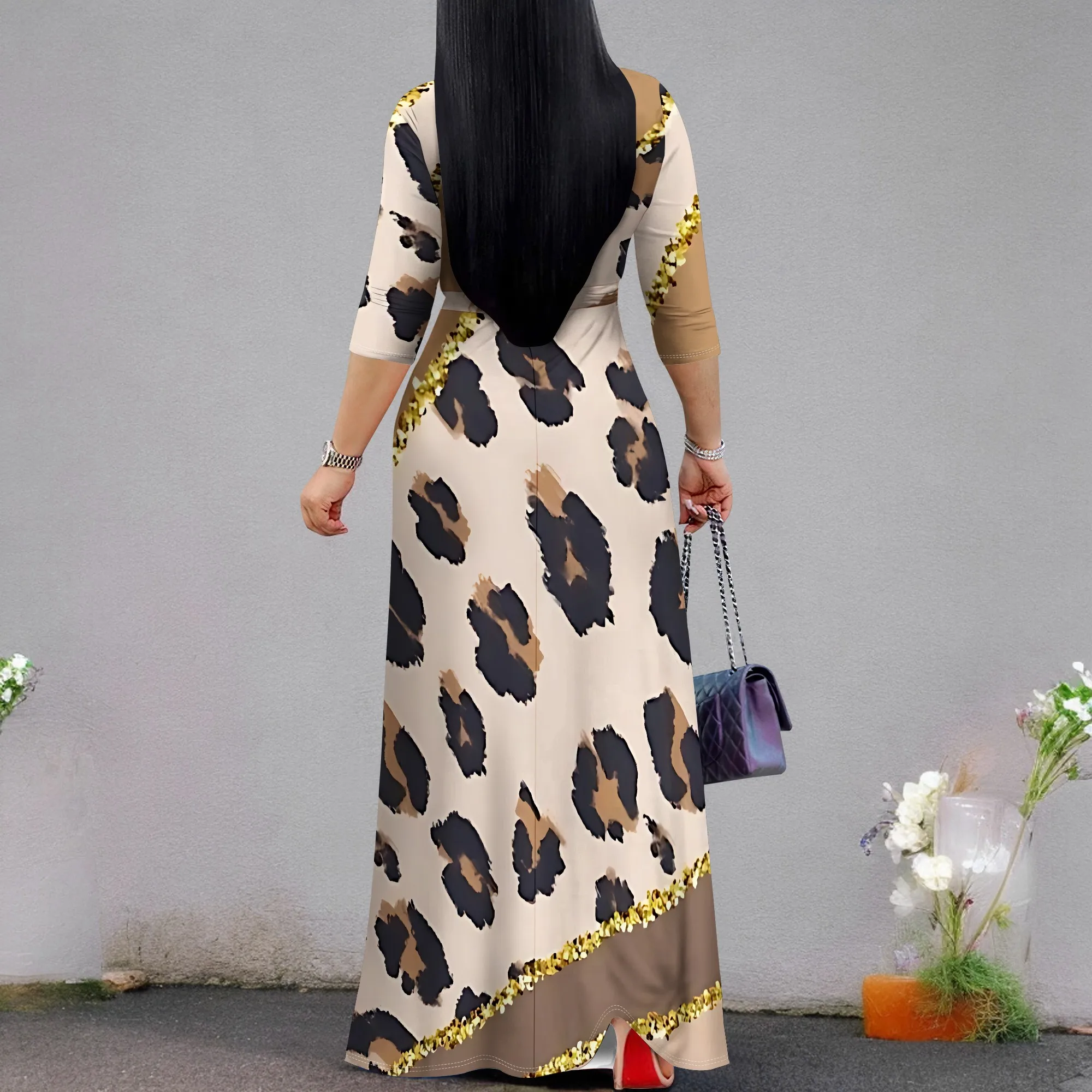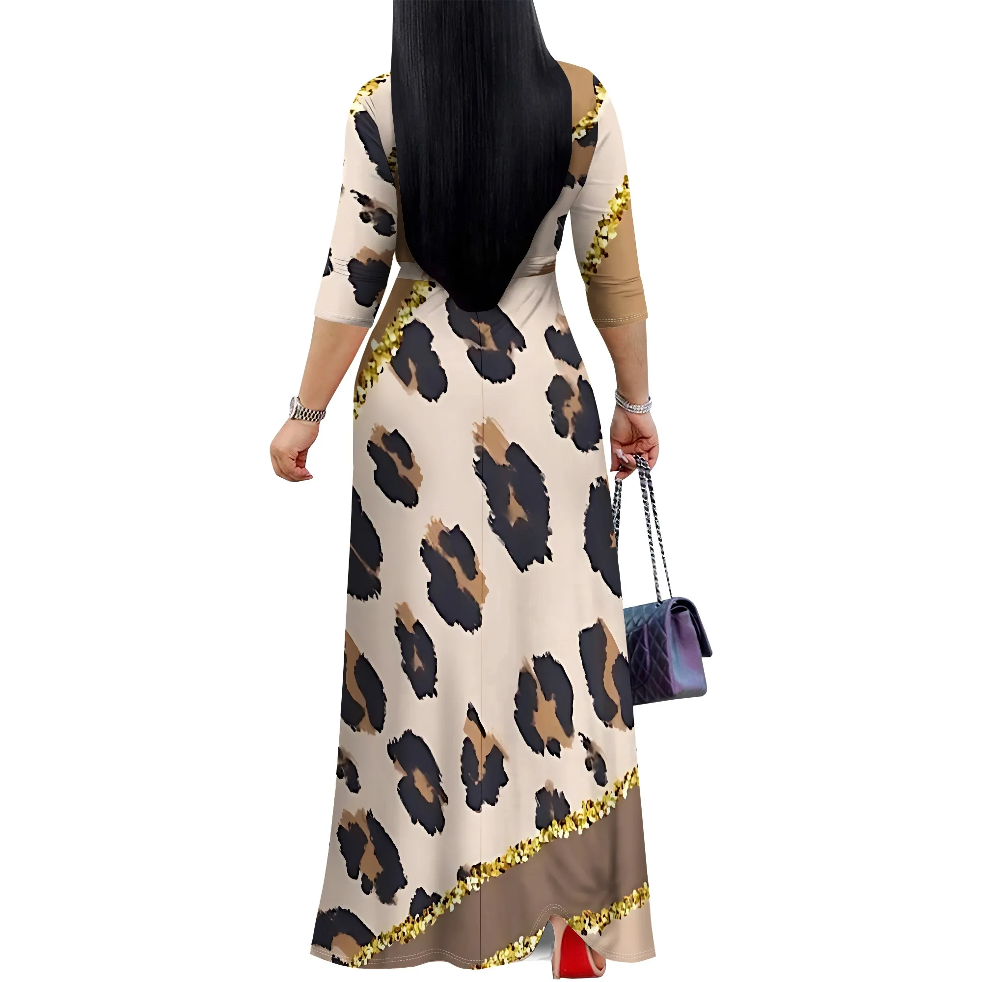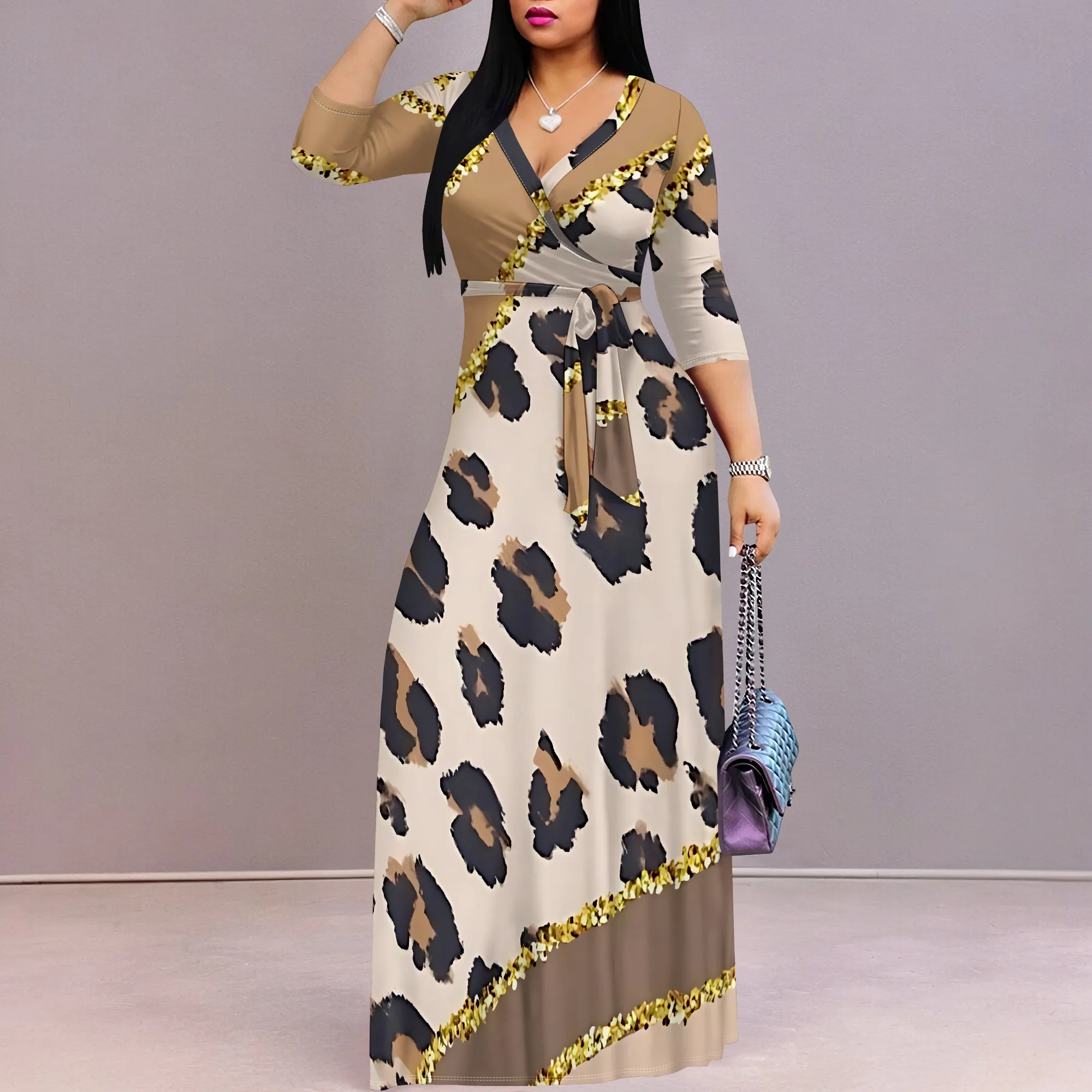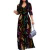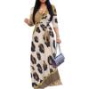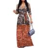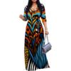 Women’s 3/4 Sleeve V Neck Women With Pocket and Bel Long Dress Fashion Printed Split Hem Club Party Casual Vacation Maxi Dress