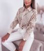 Women’s Blouses Hollowed Out Long Sleeved Shirt Casual Solid Button Up With Lapel And Open Front Camisas Femininas