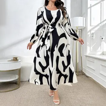 Plus Size Fashionable Short Sleeve Printed Waist-Cinching Dress Stylish Spring Summer New Arrival Women’s plus Size Dress Pol…