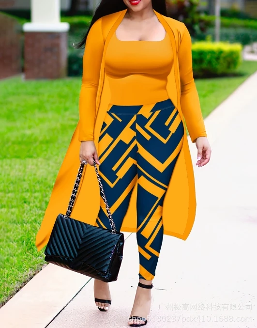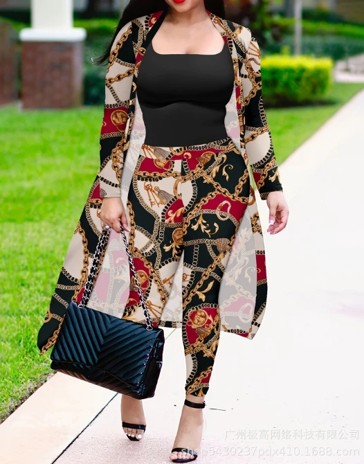 Women’s Elegant Style Suits 2024 Spring Summer Latest Chic Ceremony Long Sleeved Printed Jacket Cape Leggings Two-Piece Set
