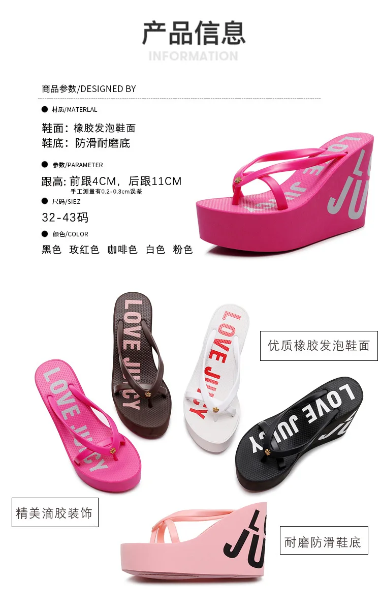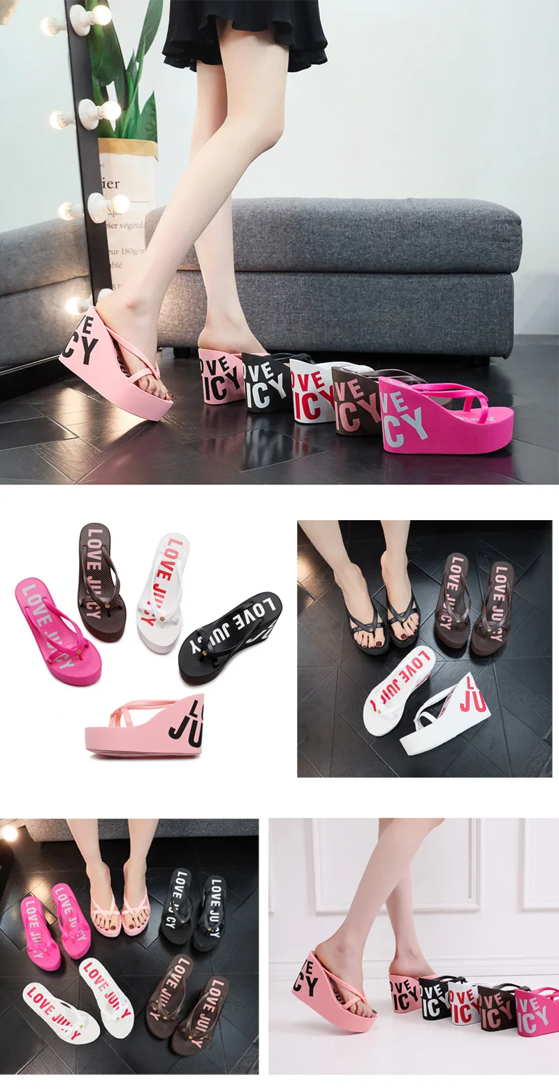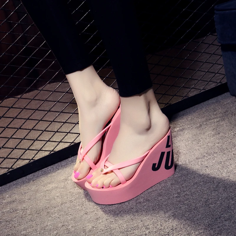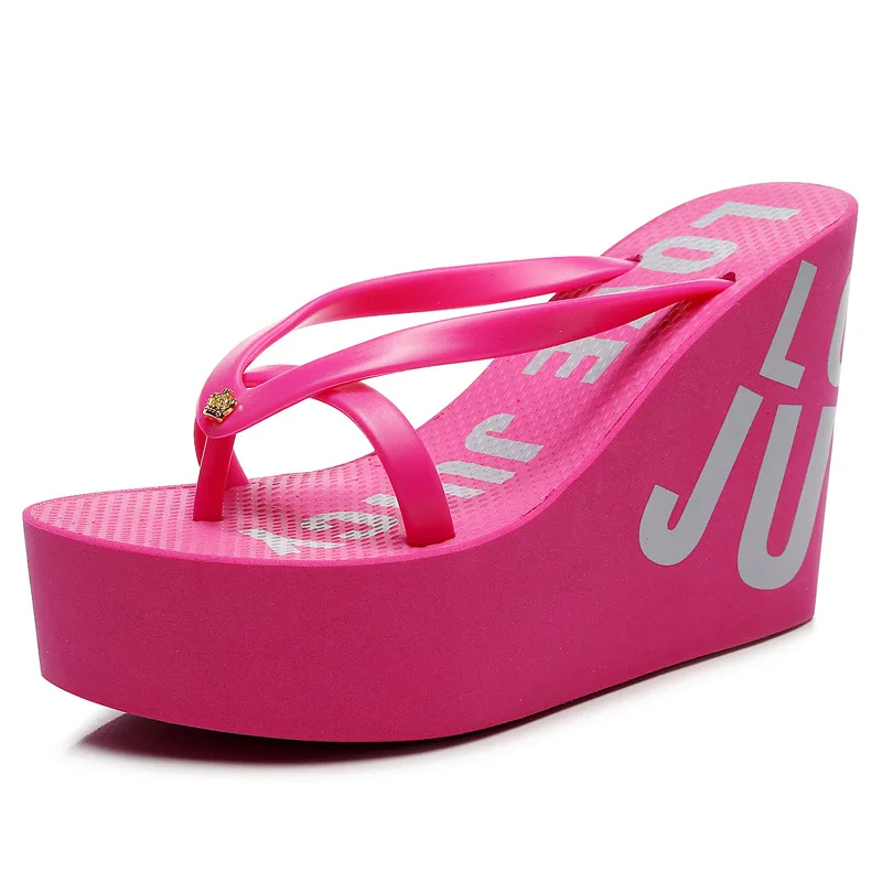 Women’s Fashion Sexy Slippers Summer Super High Wedge Heels Increase 11cm Nonslip Wearresistant Comfortable Party Beach Slippers