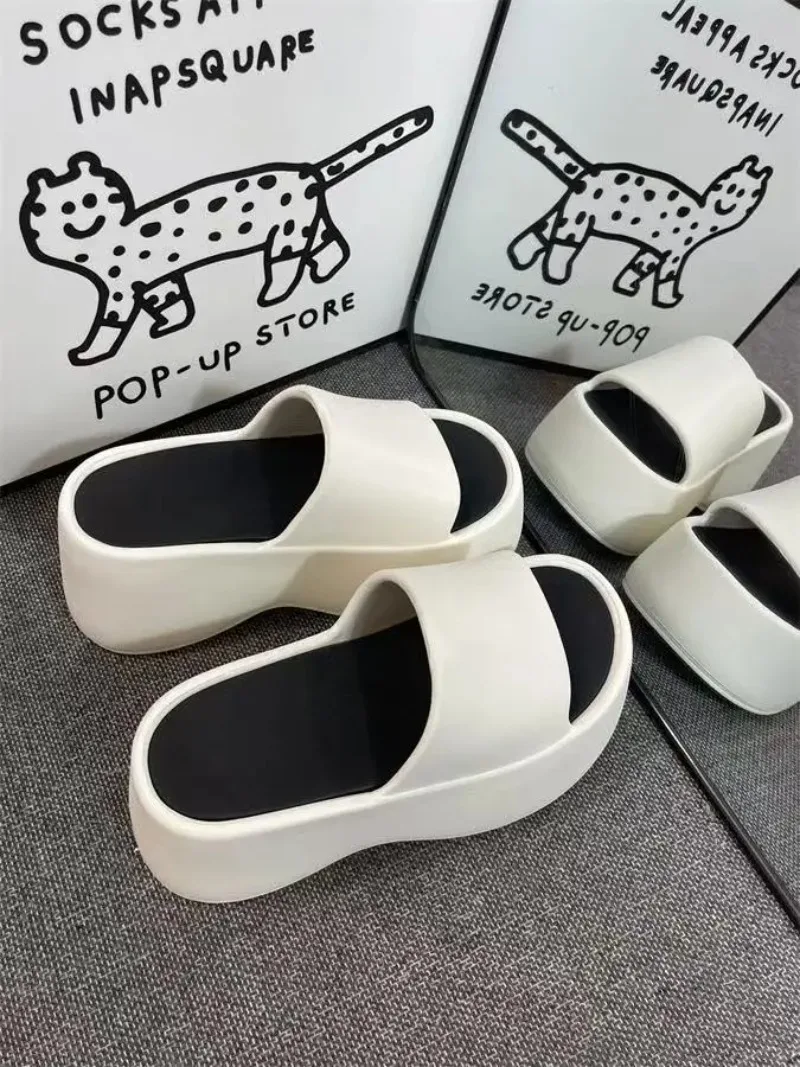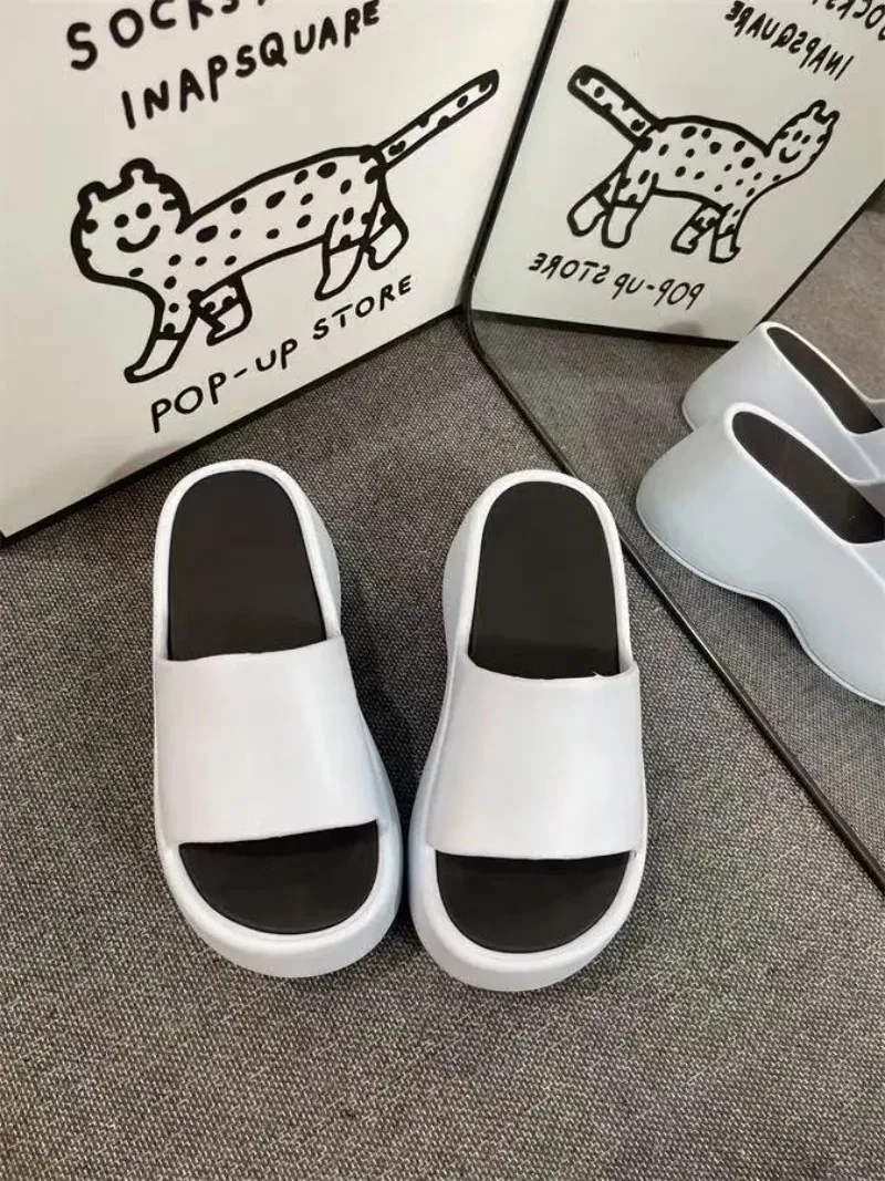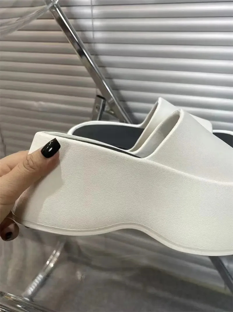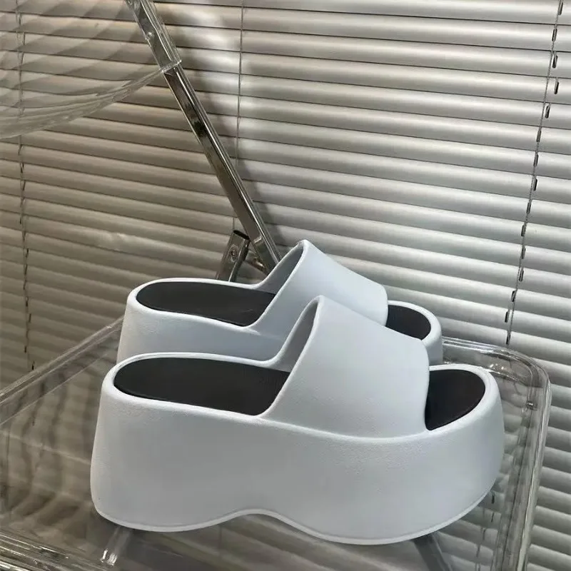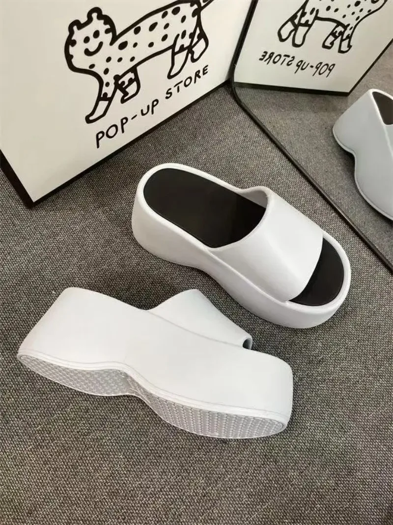 Women’s Fashion Slippers 2025 New 8cm High Platform Sandals White Chunky Slides Shoes Women Summer Women Height Increase Slipper