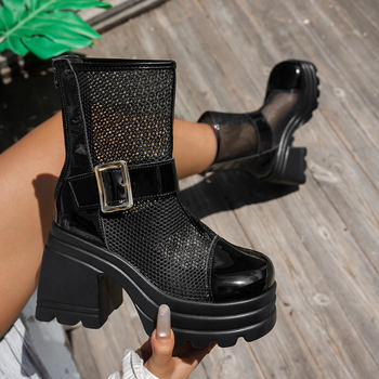 2025 New Women Boots Summer Solid Color Round Toe Boots Thick Heel Fashion Shoes Women Mesh Breathable Comfortable Women Sandals