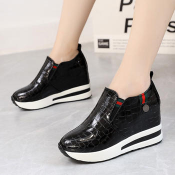 Wegde Heel Shoes for Women Height Increasing Sneakers Slip on Loafers Women Platform Sneakers Women PU Leather Casual Shoes
