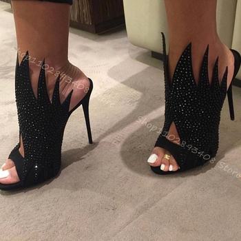 Black Rhinestone Strange Design Sandals Peep Toe Stiletto High Heels Slip on Fashion Women Summer Shoes 2023 Zapatos Para Mujere