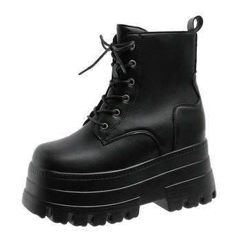 NEW Punk Style Wedges Ankle Boot Black Rubber Sole Shoes 14CM Platform Boots Women Lacing Autumn Sexy lady Wedge Heels Sneakers