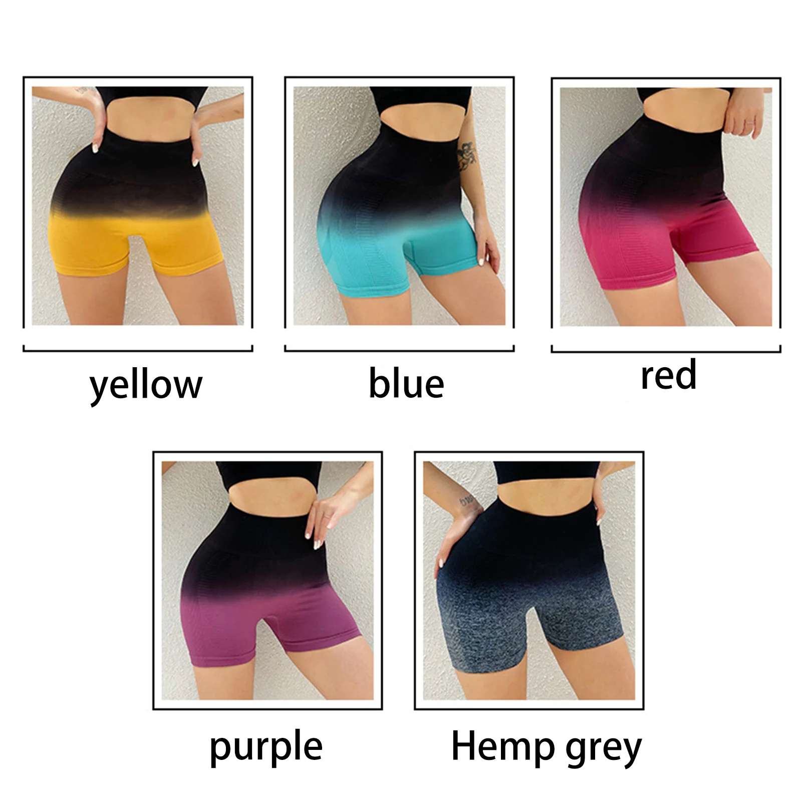 Women’s Gradient Yoga Shorts High Waist Elastic Hip Lift Fitness Pants for Outdoor Fitness Training Running