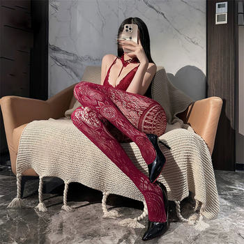 Sexy Lady Open Crotch Long Stockings Plus Size Mesh Erotic Tights Rhinestone Knitted Legging Pantyhose Y2k Sock Fishnet Stocking