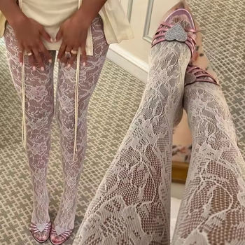 XIANGSHANGIRL Elegant Floral Pantyhose for Women’s European Luxury White Tights Dating Legging Sexy Fishnet Bodystockings
