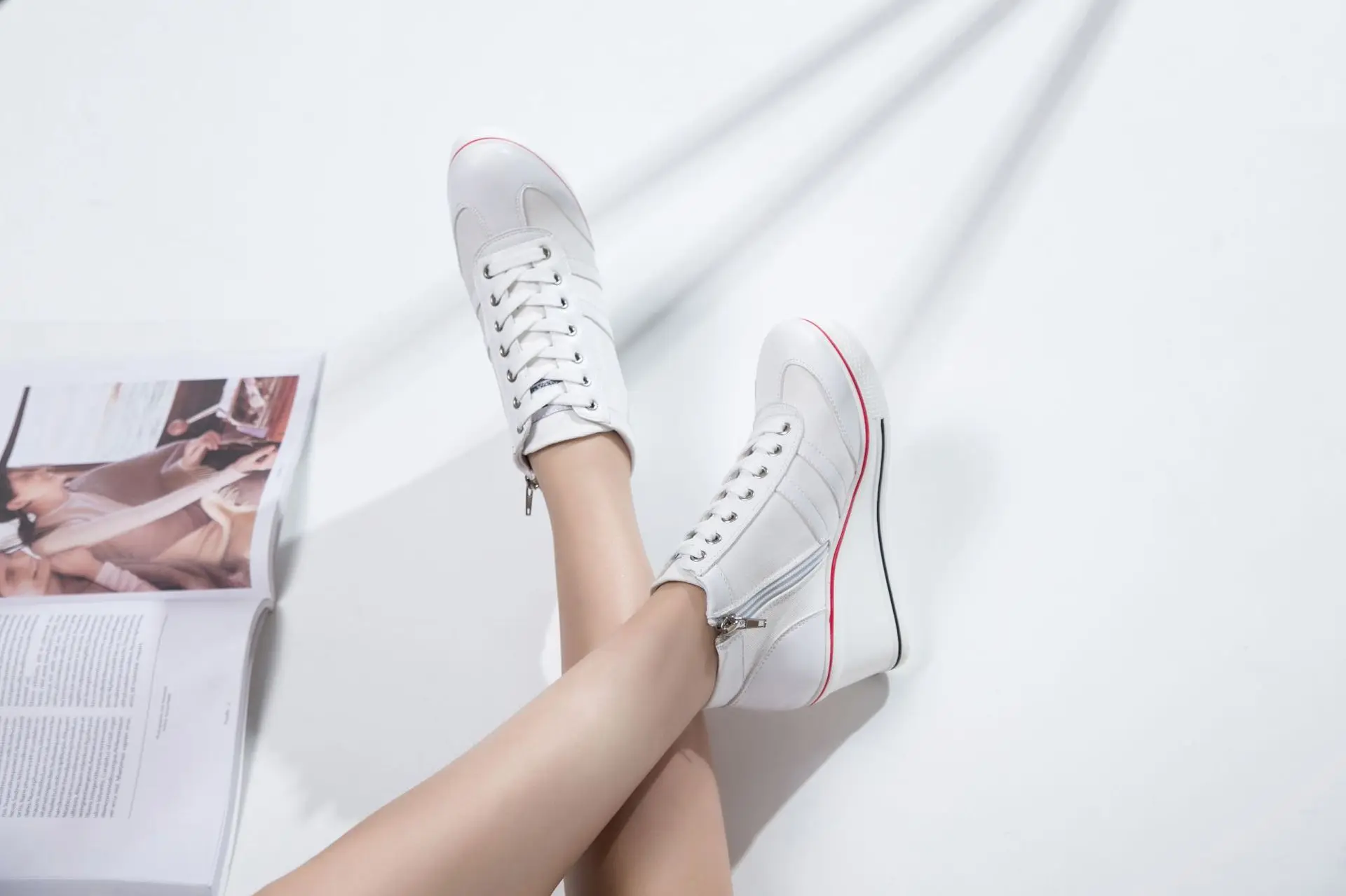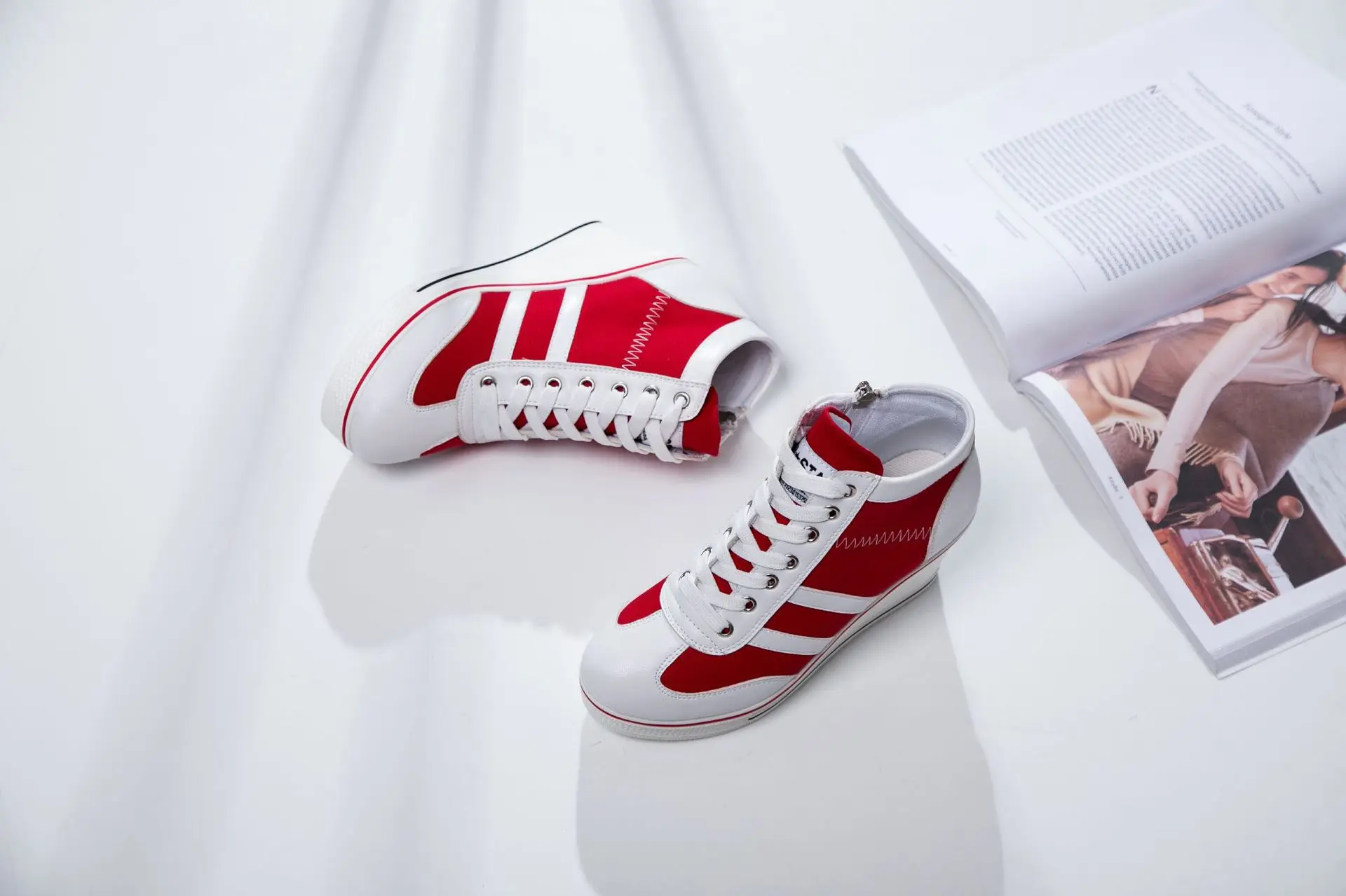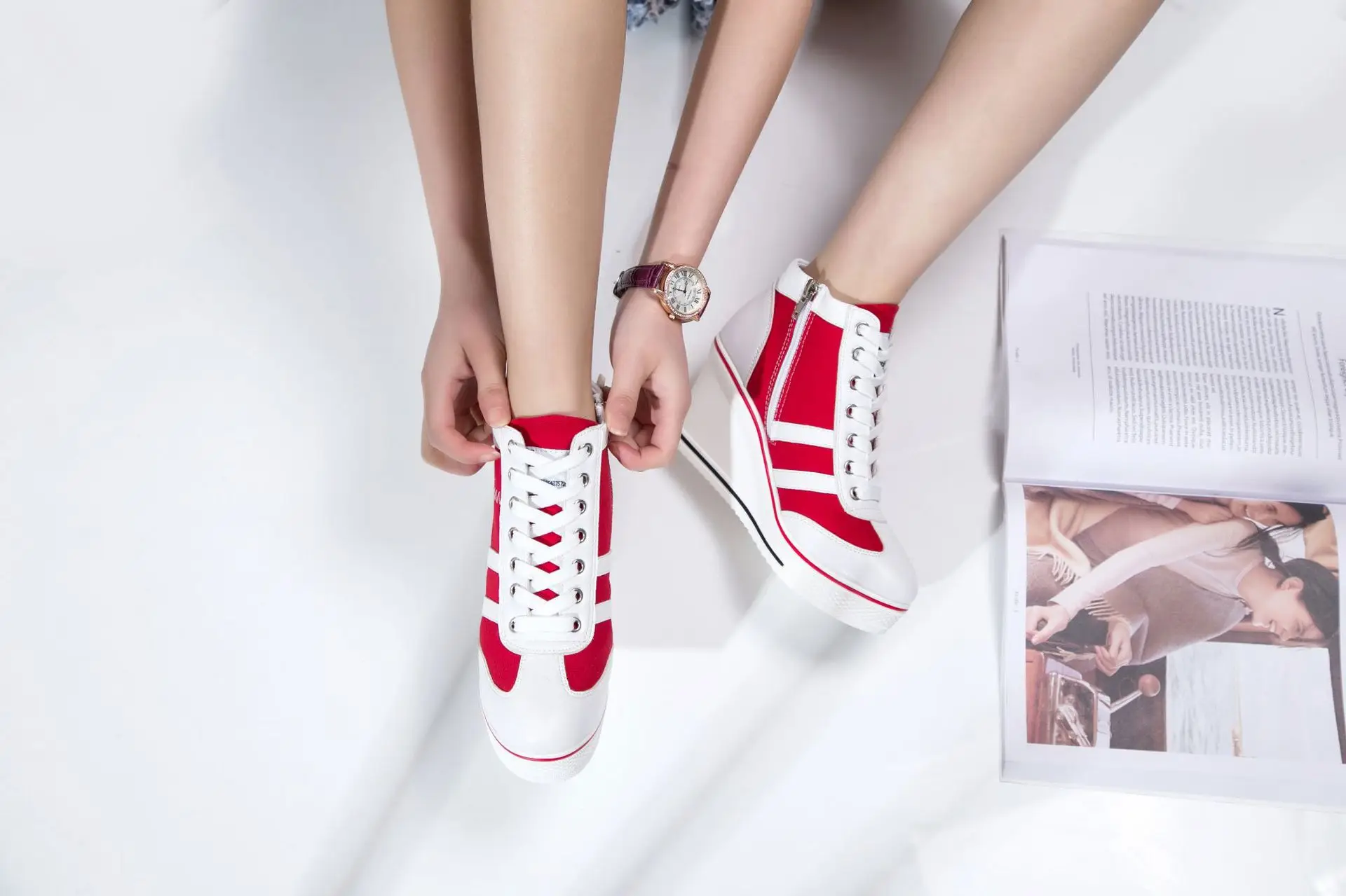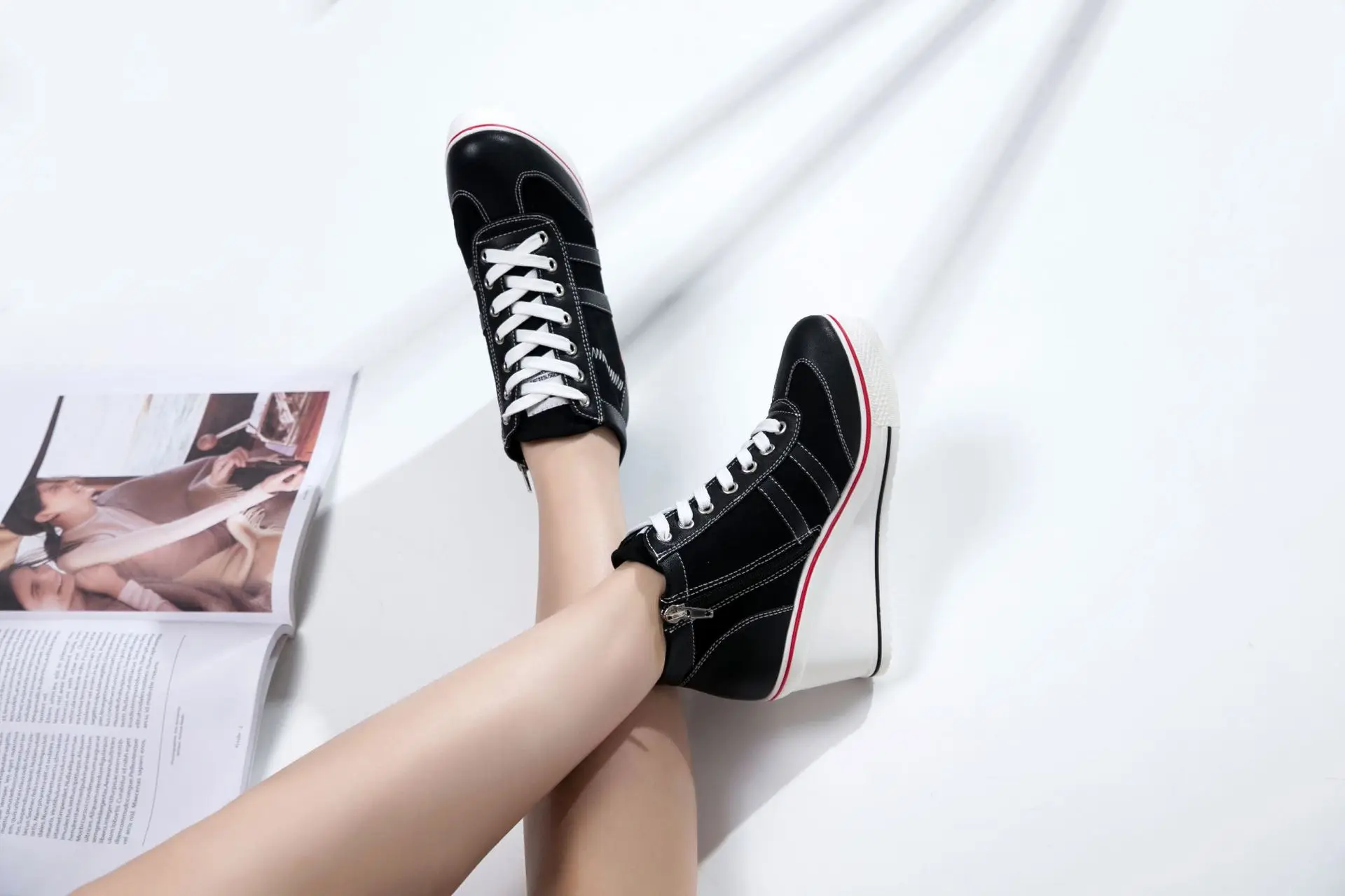 Women’s Shoes 2025 New Wedge Heel Casual Canvas Shoes Women’s Side Chain Lace-up Platform Shoes 8 Cm High Heel Shoes