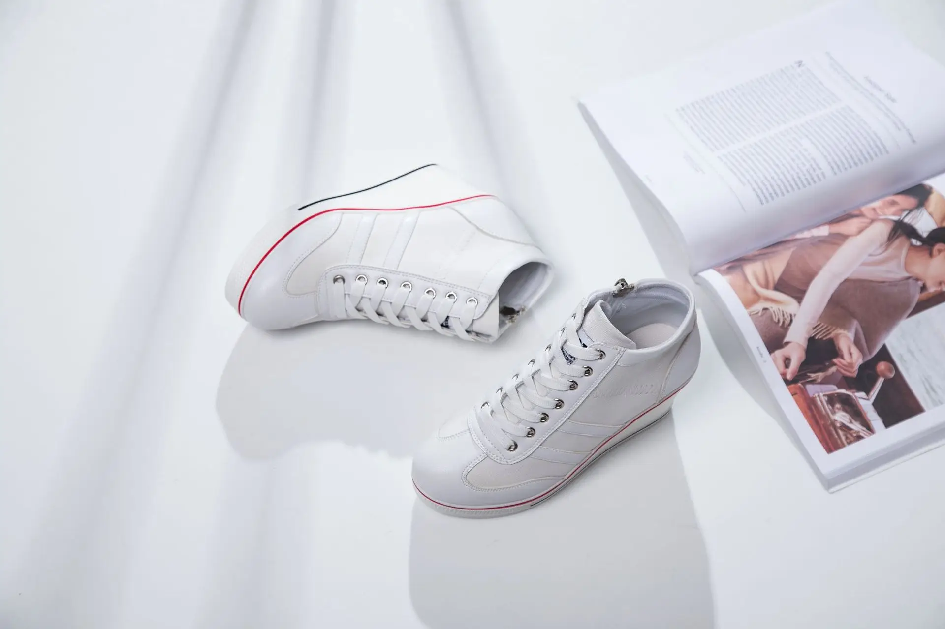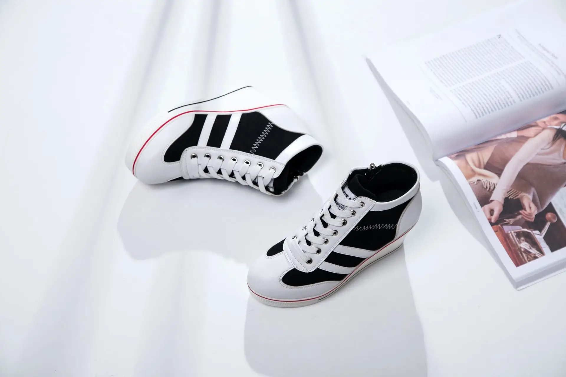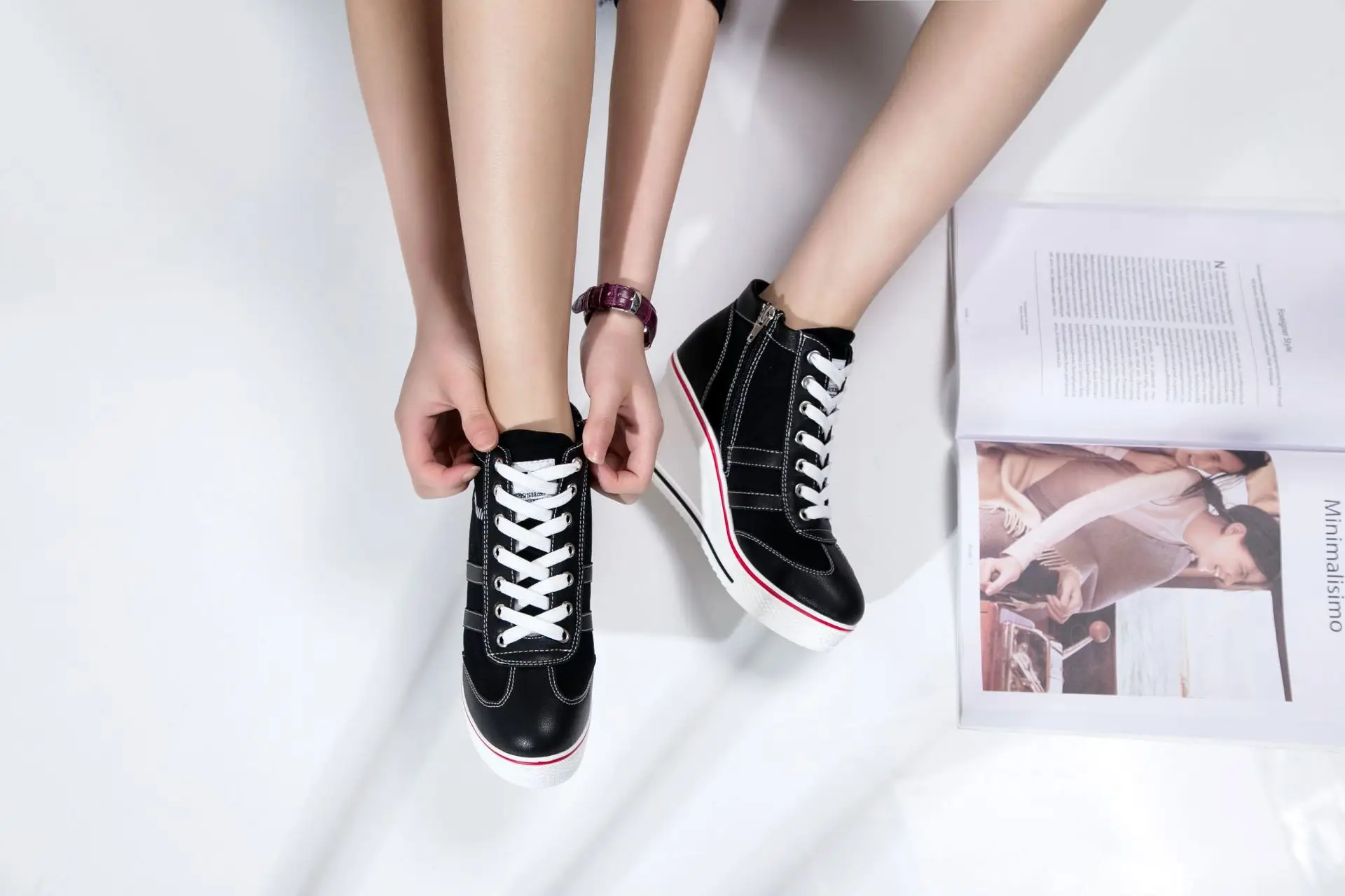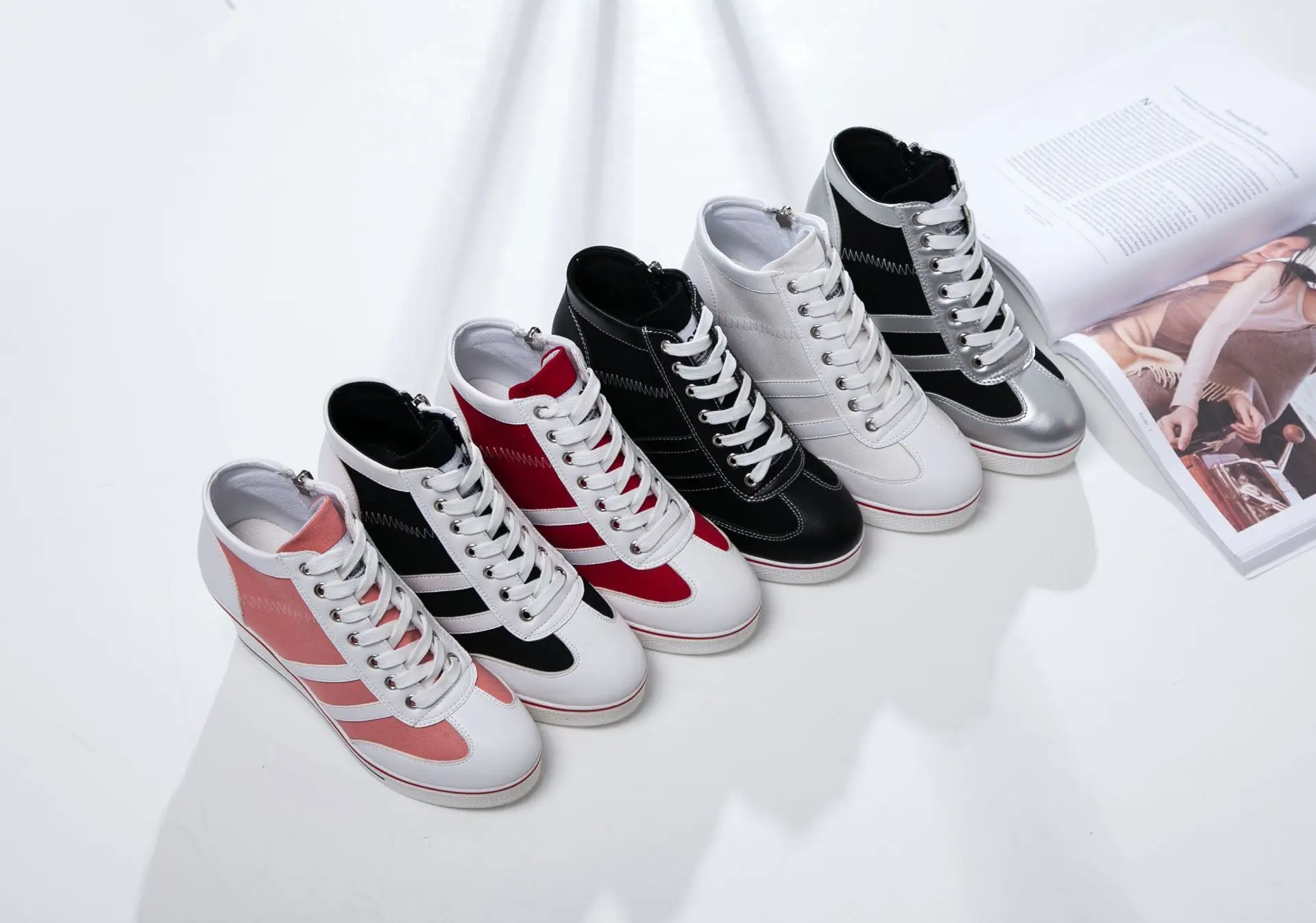 Women’s Shoes 2025 New Wedge Heel Casual Canvas Shoes Women’s Side Chain Lace-up Platform Shoes 8 Cm High Heel Shoes