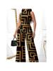 Women’s Sleeveless Color-Block Jumpsuit European American Maze Geometric Pattern Fashion Comfortable Commuterwear