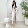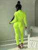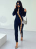 Women’s stand up collar tight solid color jumpsuit with metal circle decoration long sleeved all-in-one pants, fitness leggings
