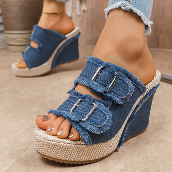 Heel as internal height to short girl like me. Standing on it has the stylish double belt buckle design. Like the picture wear with a skinny pants. Or you may wear with a sweatshirts.