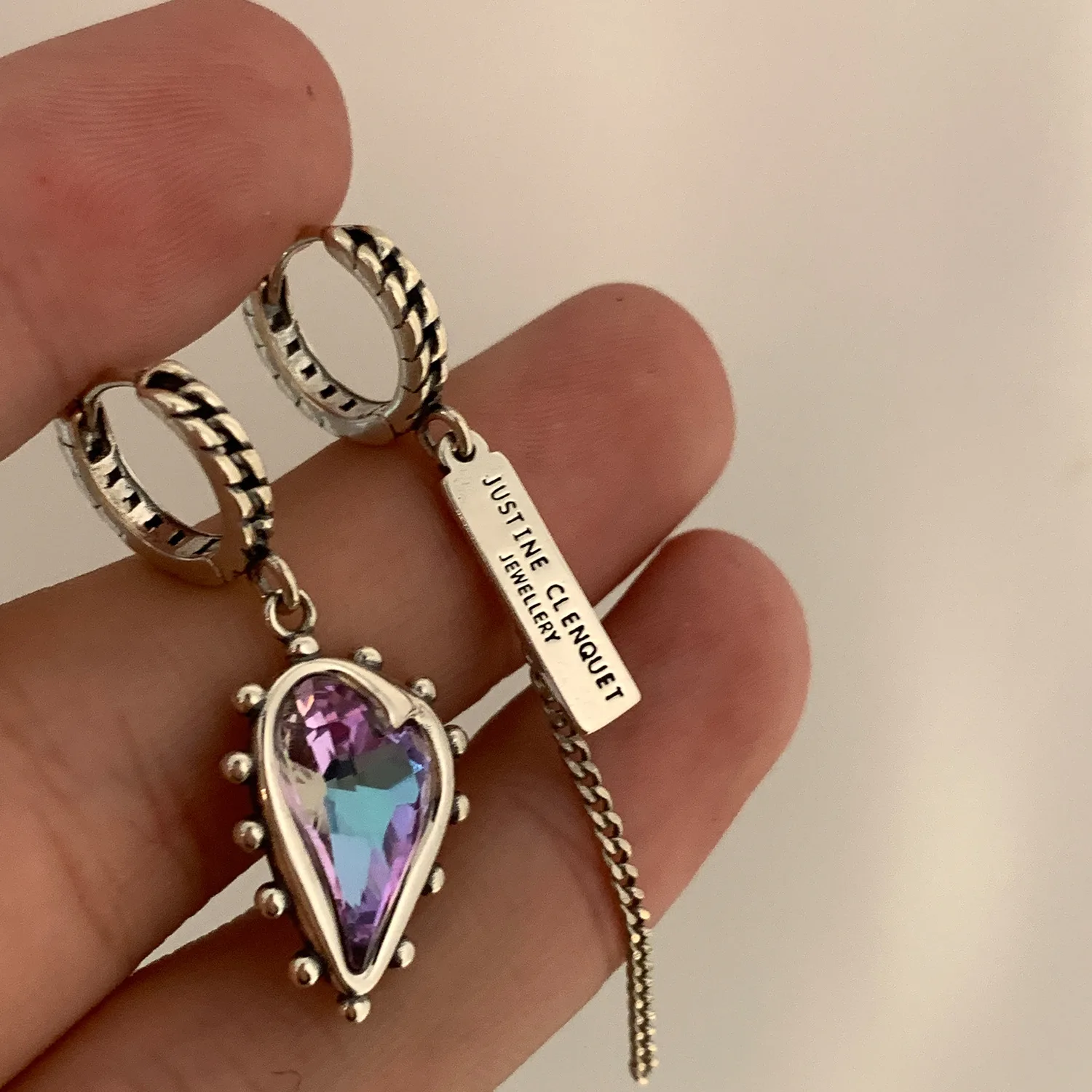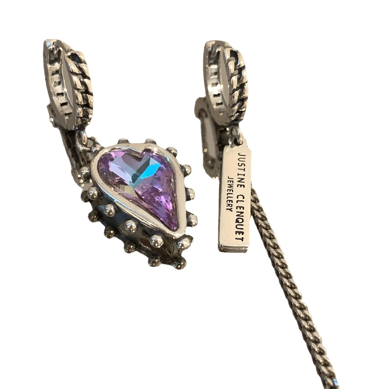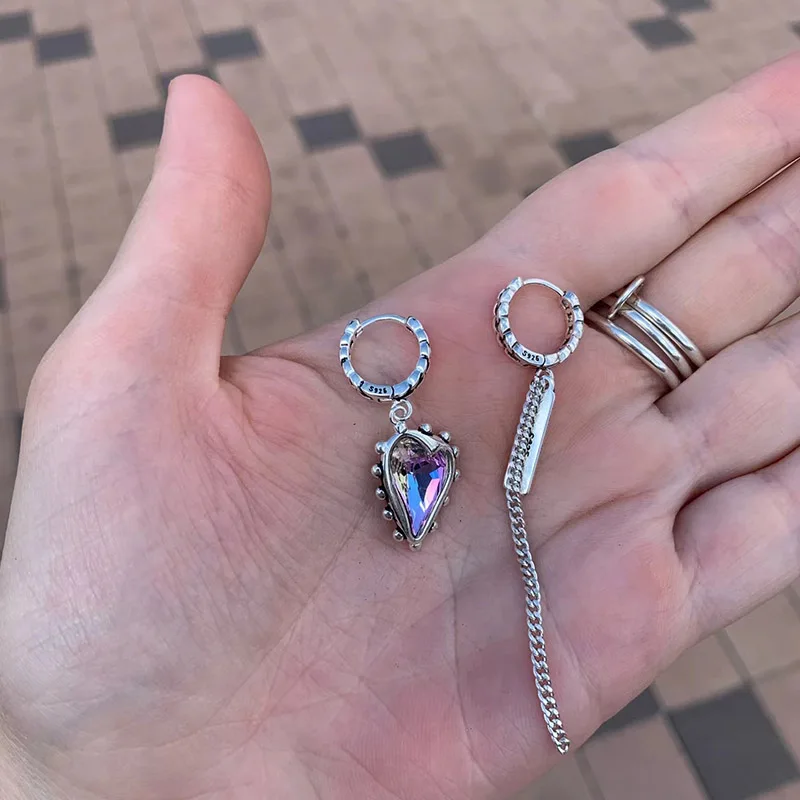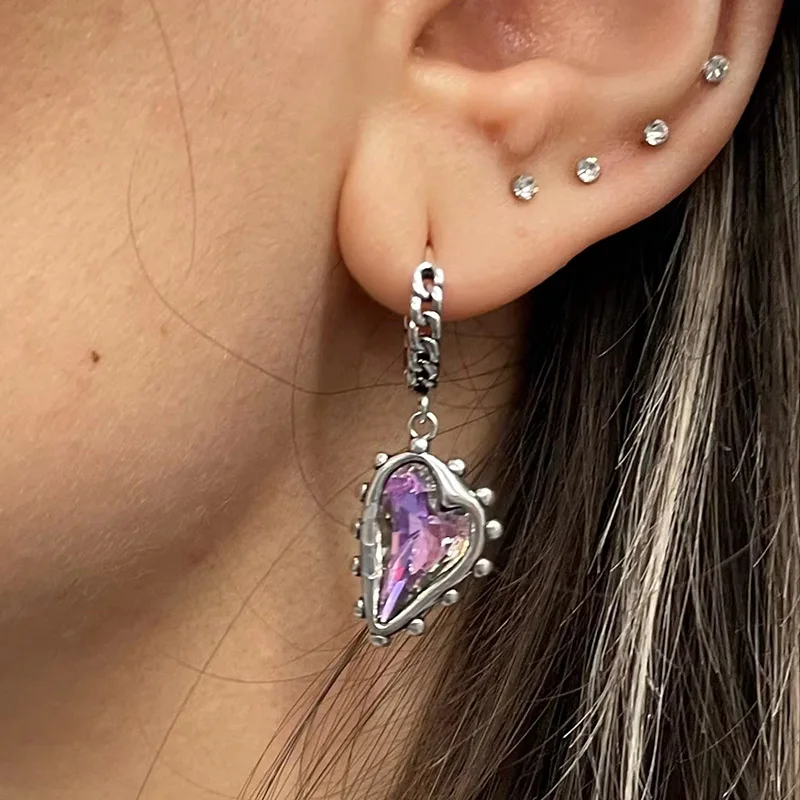 XIYANIKE Vintage Purple Crystal Heart Ssymmetrical Drop Dangle Hoop Earrings For Women Girl Fashion Jewelry Gift Party серь