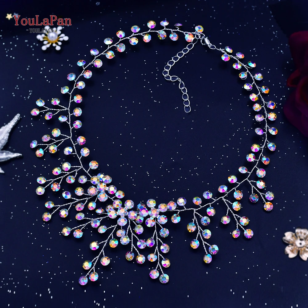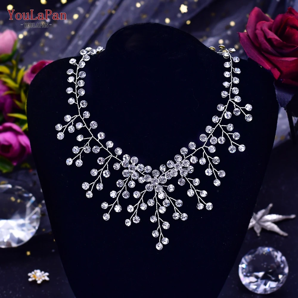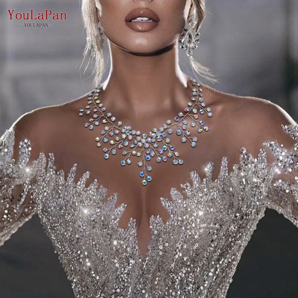YouLaPan HN01 Shiny Crystal Bridal Necklace Ladies Women Collar Chain Choker Wedding Party Diamante Rhinestone Brides Jewelry