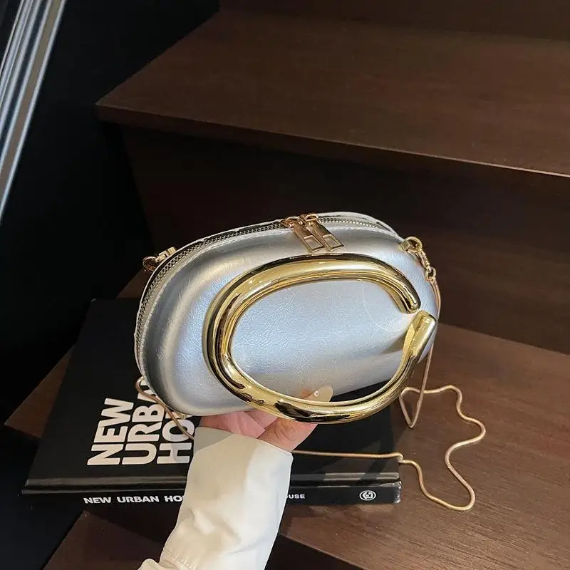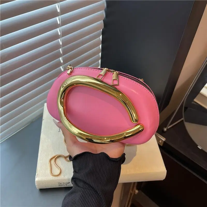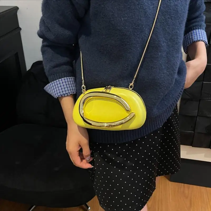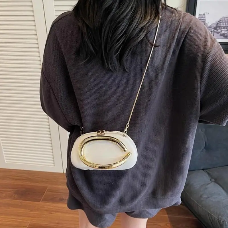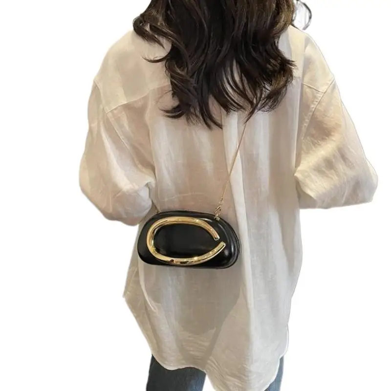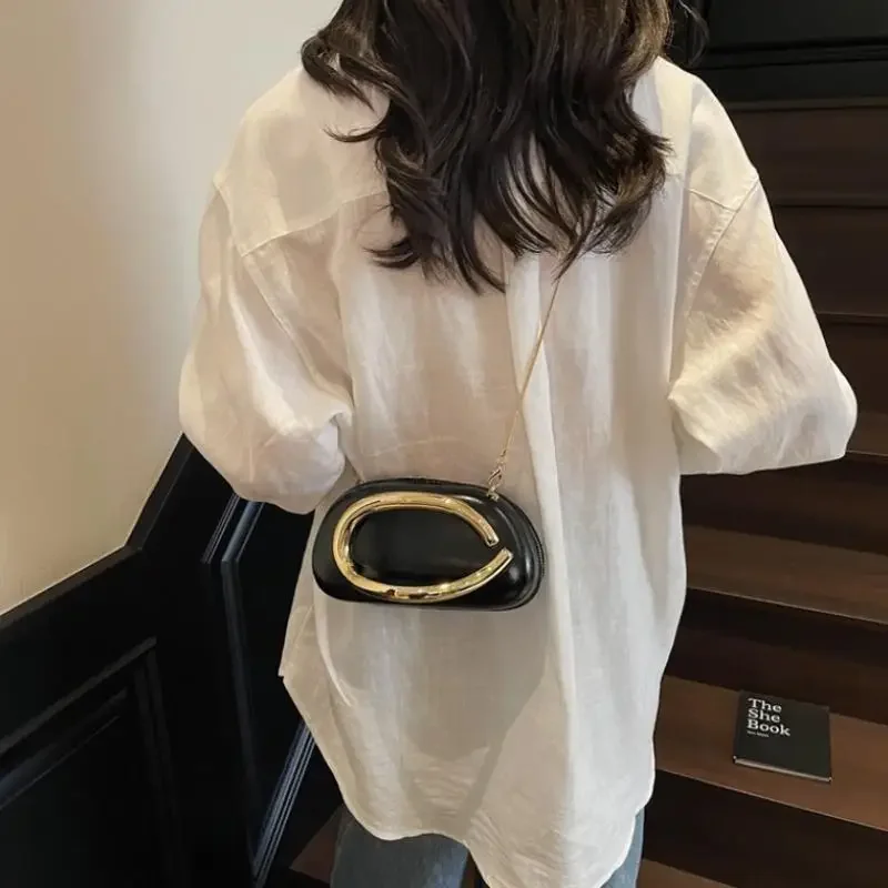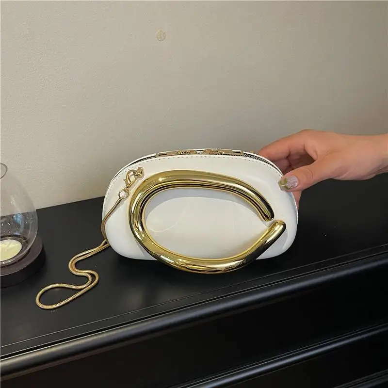 Z Style Small Square Clutch Bag Evening Bag With Special-shaped Metal Chain Luxury Shoulder Bag Decorative Box-style Design