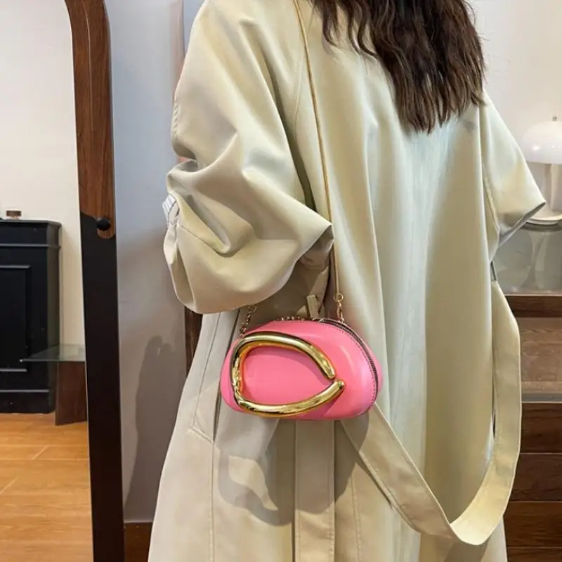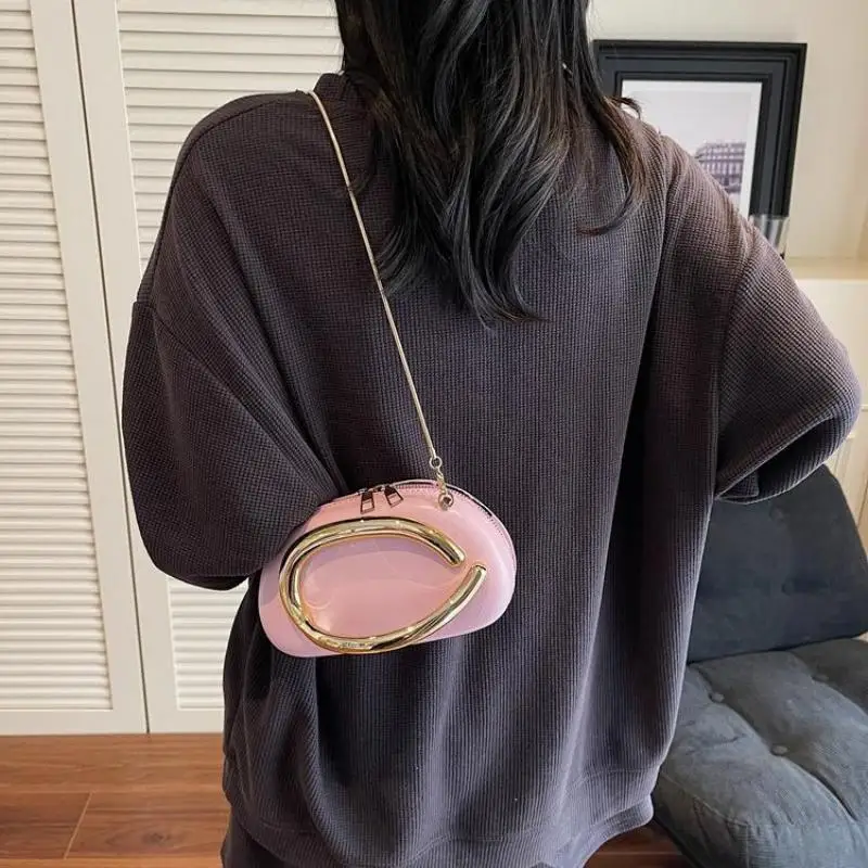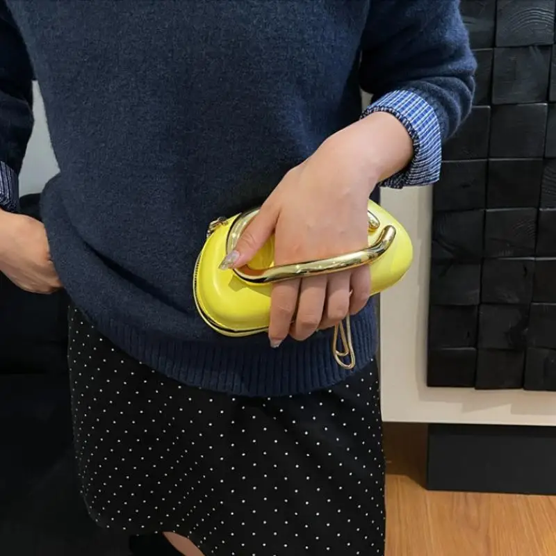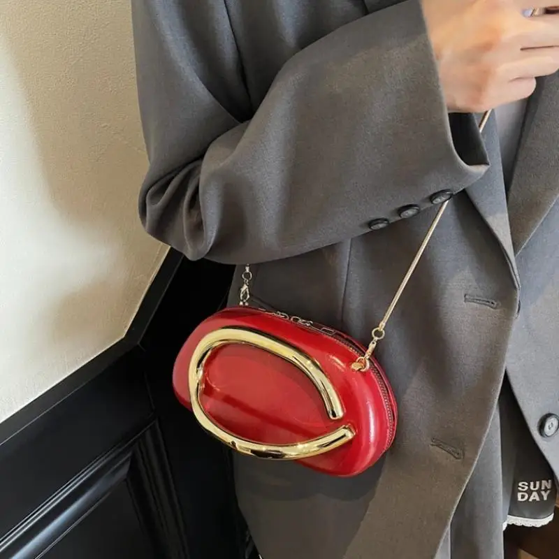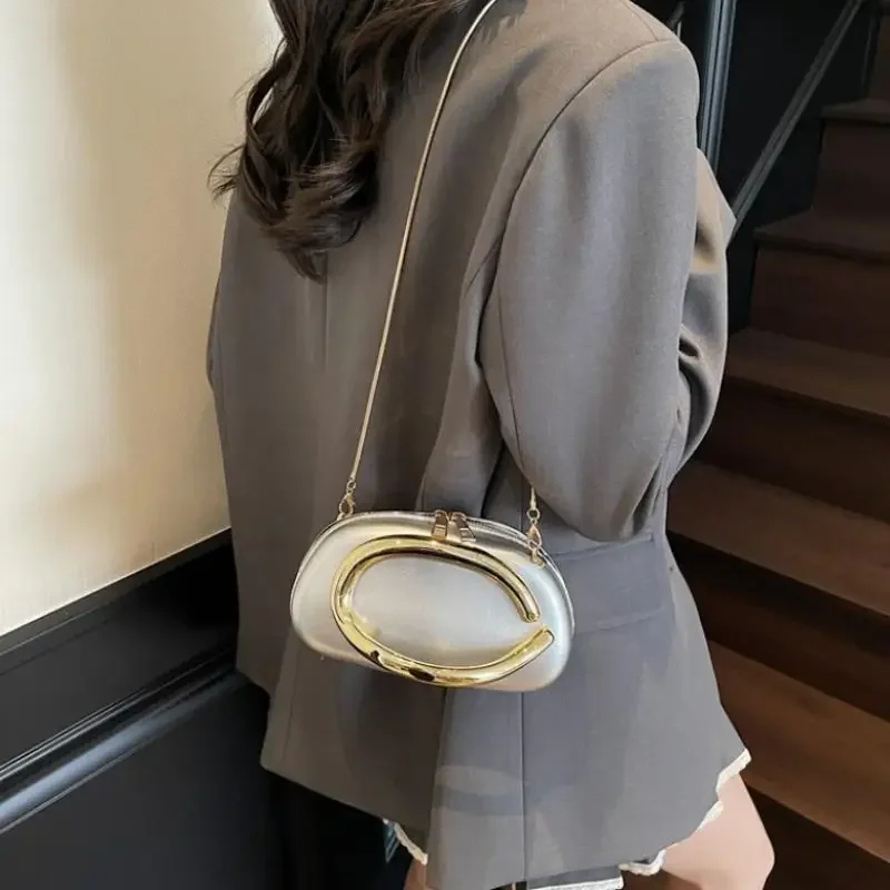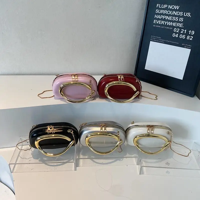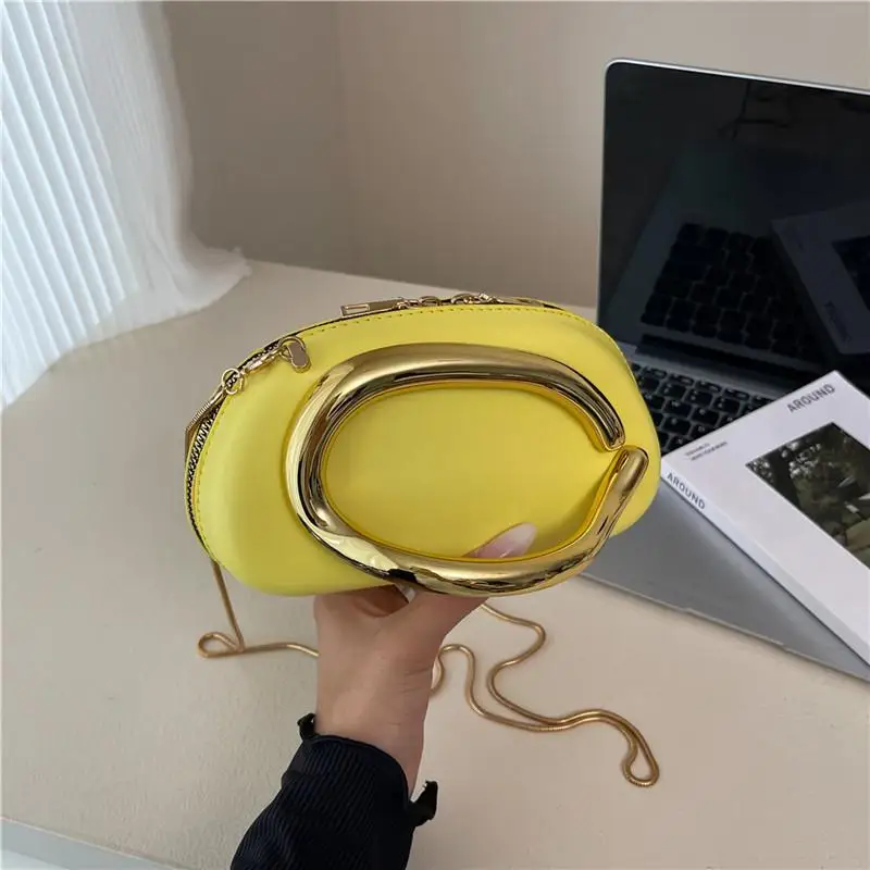 Z Style Small Square Clutch Bag Evening Bag With Special-shaped Metal Chain Luxury Shoulder Bag Decorative Box-style Design